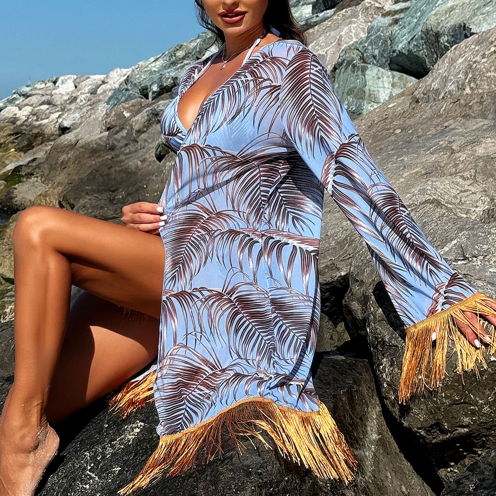 Swimsuit Women Three Piece Sets Veils Dress Miami Tassel Swimsuit Bikini