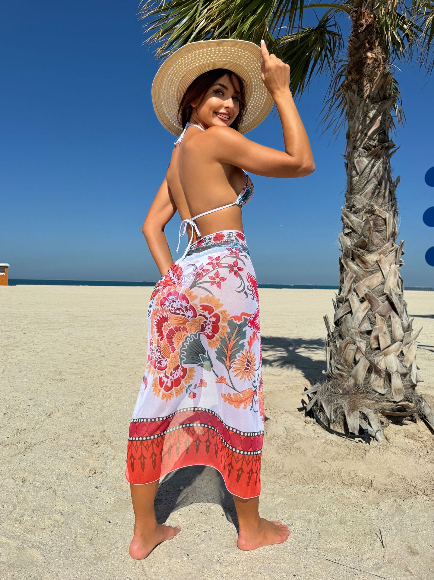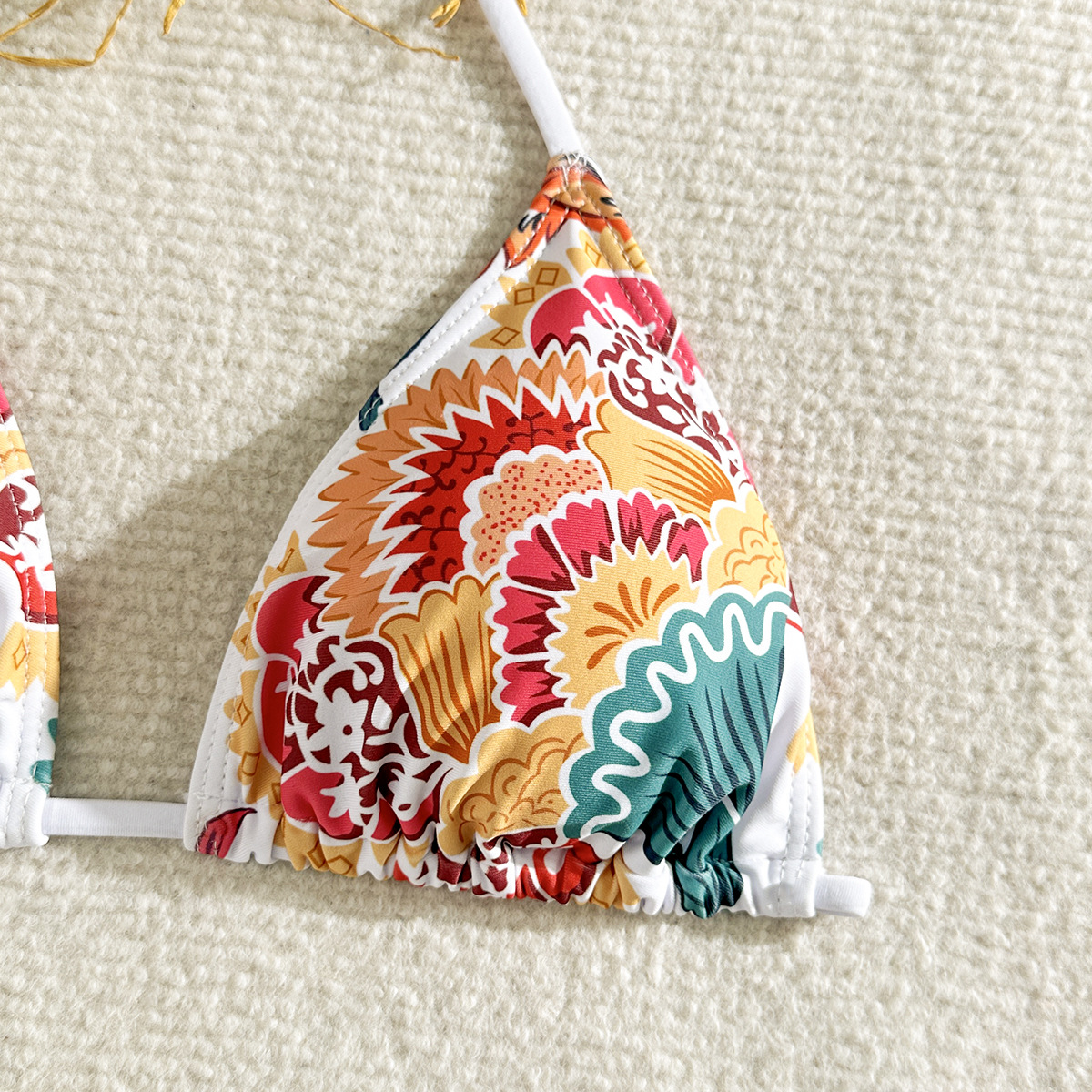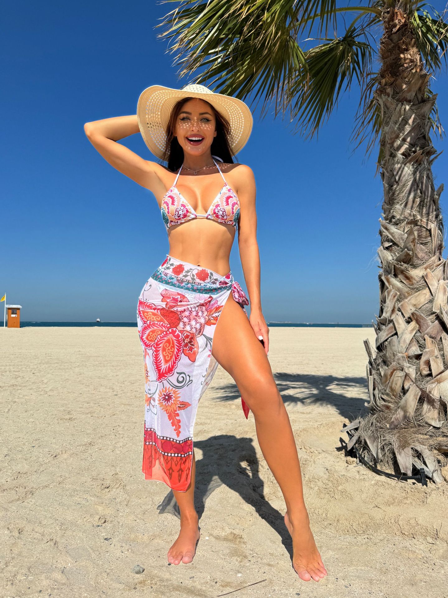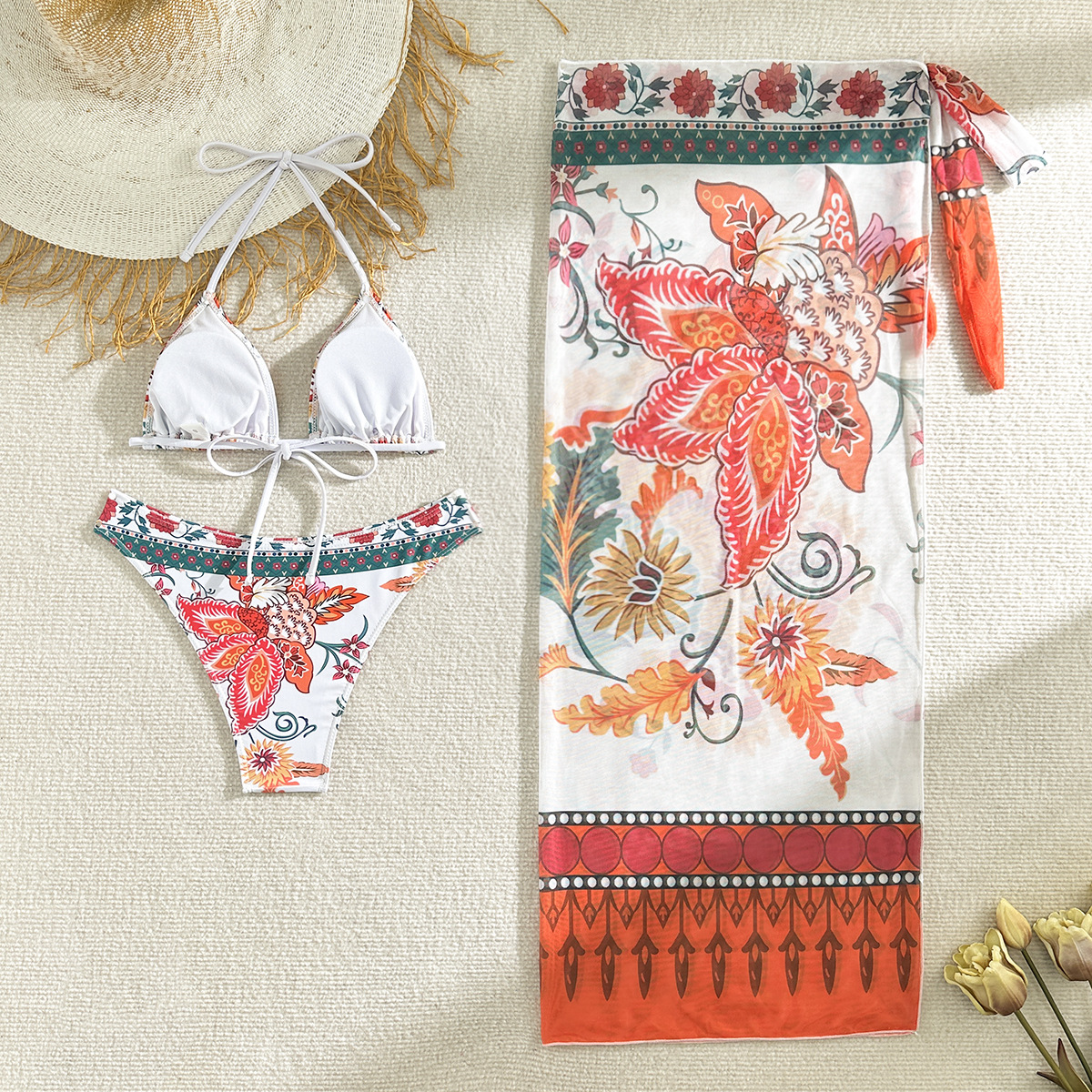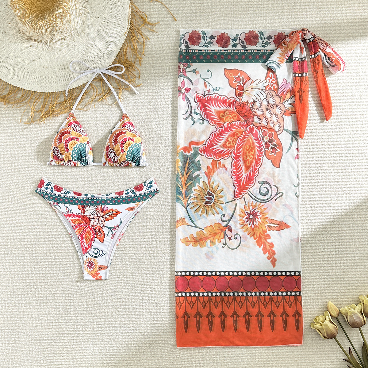 Three Piece Set Floral Printing Customized Mesh Three Piece Set Swimwear Swimsuit Bikini Bikini