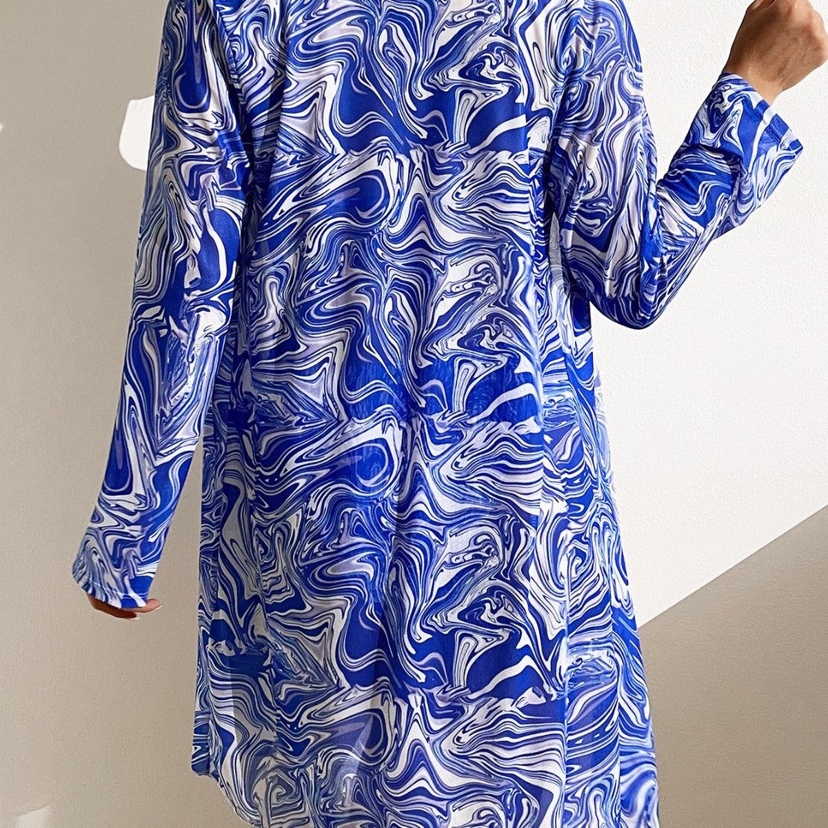 Three Piece Swimsuit Swimsuit Blue White Porcelain Color Series Large Coat Bikini Women