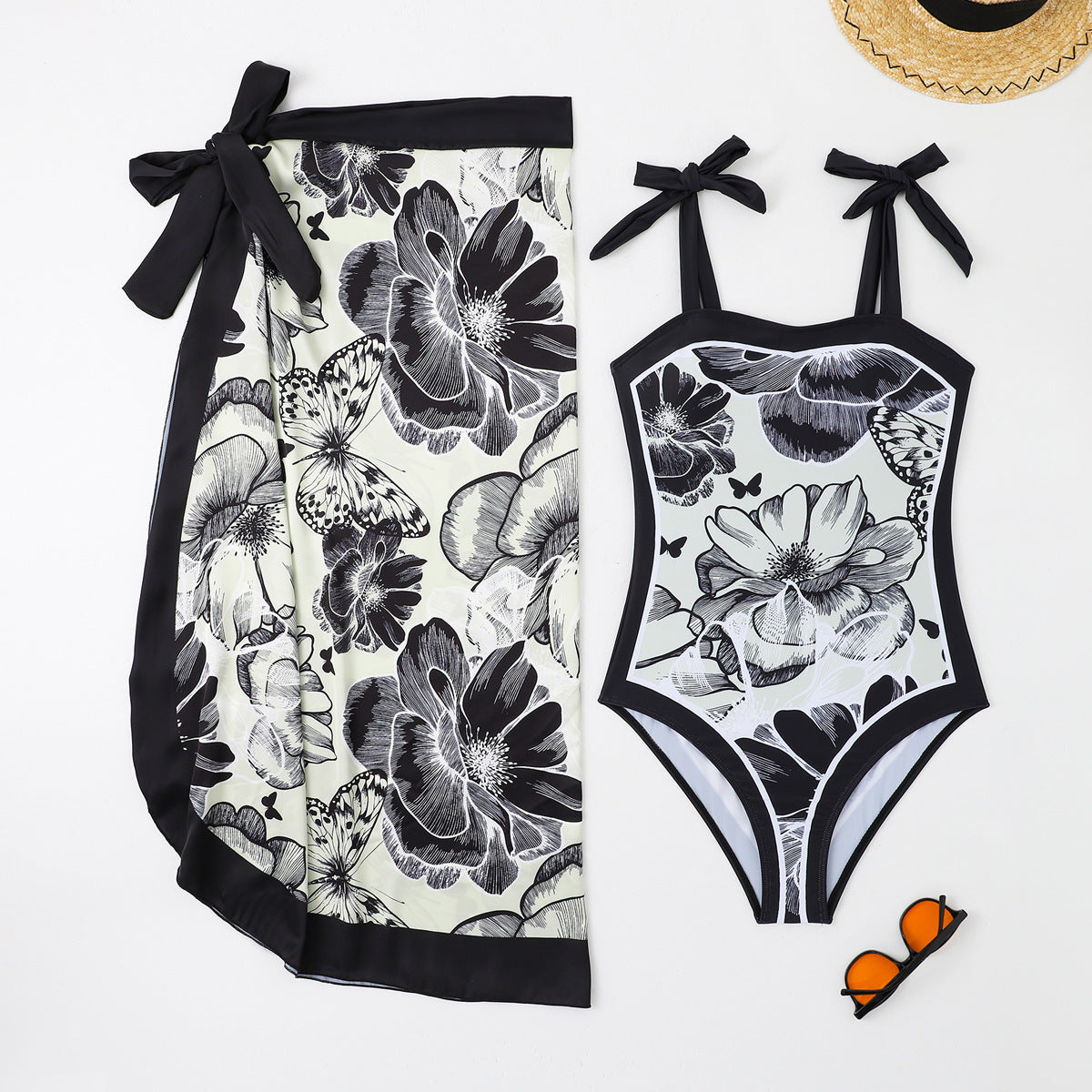 Two Piece Set Swimsuit Multi Color Printed Mesh Maxi Dress Conservative Women Swimsuit
