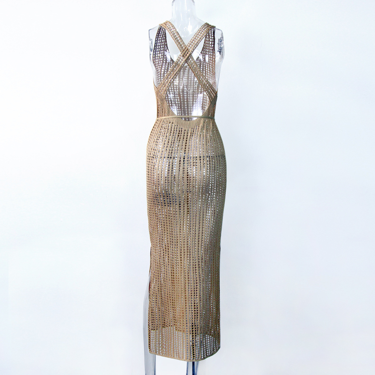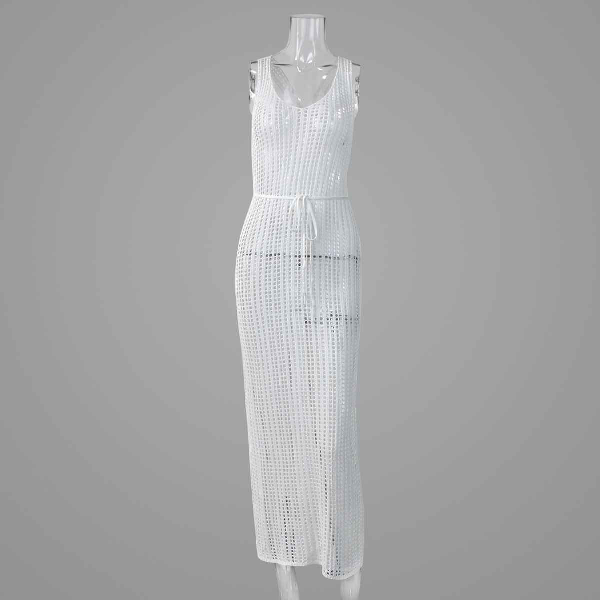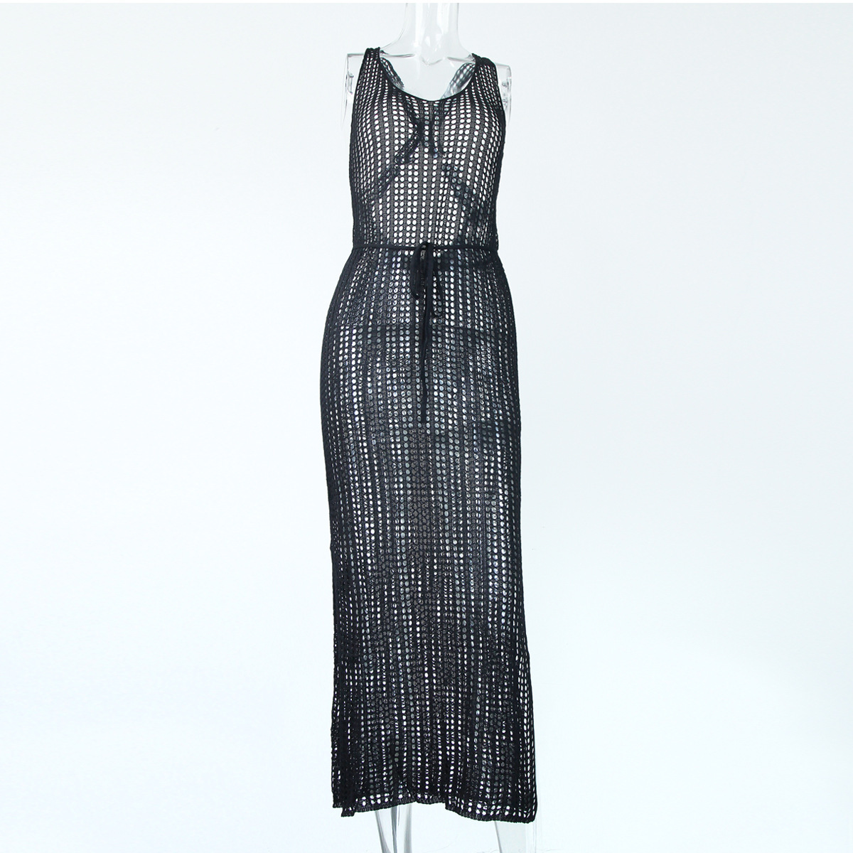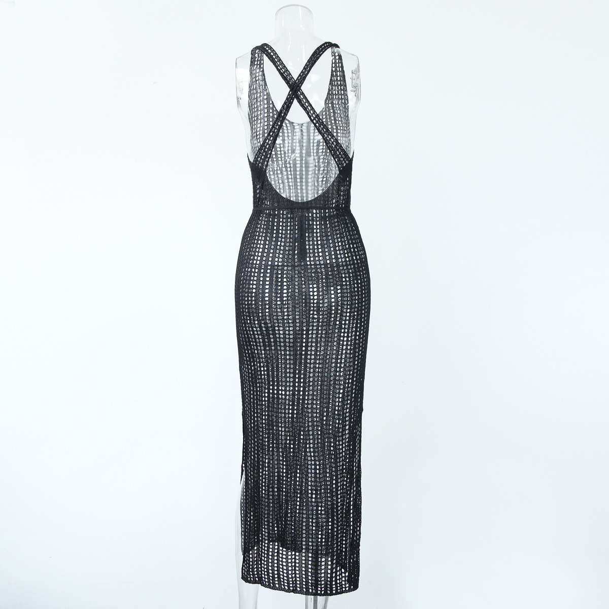 Vacation Beach Sexy Smock Dress Hollow Out Cutout Out See Through Backless Knitted Dress Women