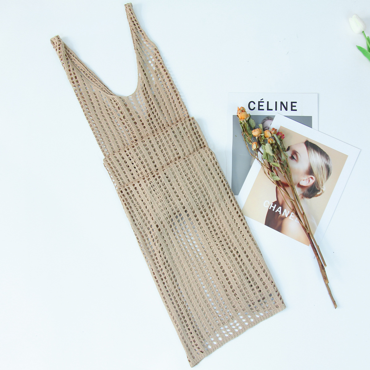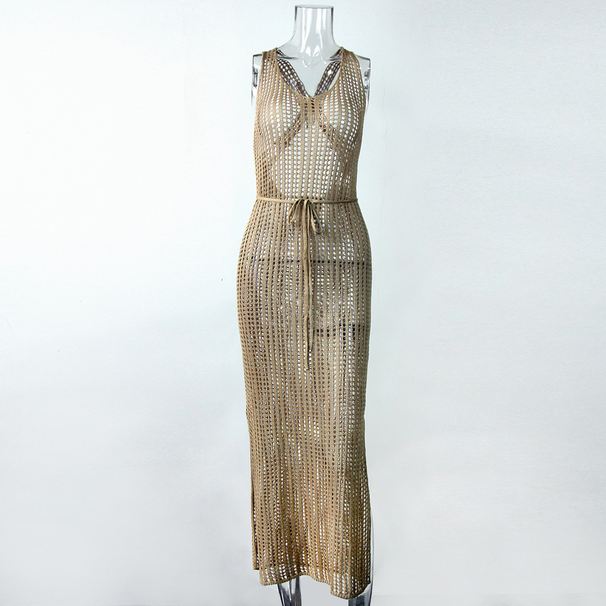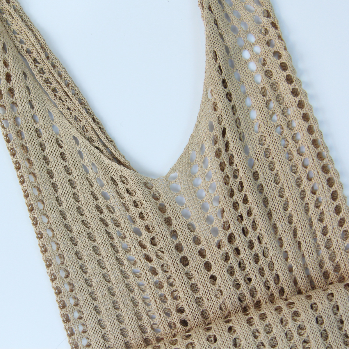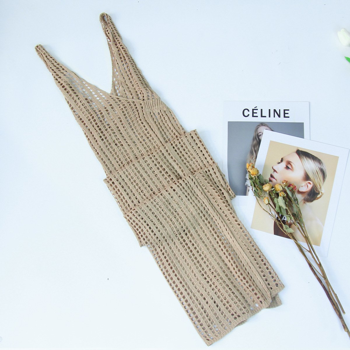 Vacation Beach Sexy Smock Dress Hollow Out Cutout Out See Through Backless Knitted Dress Women