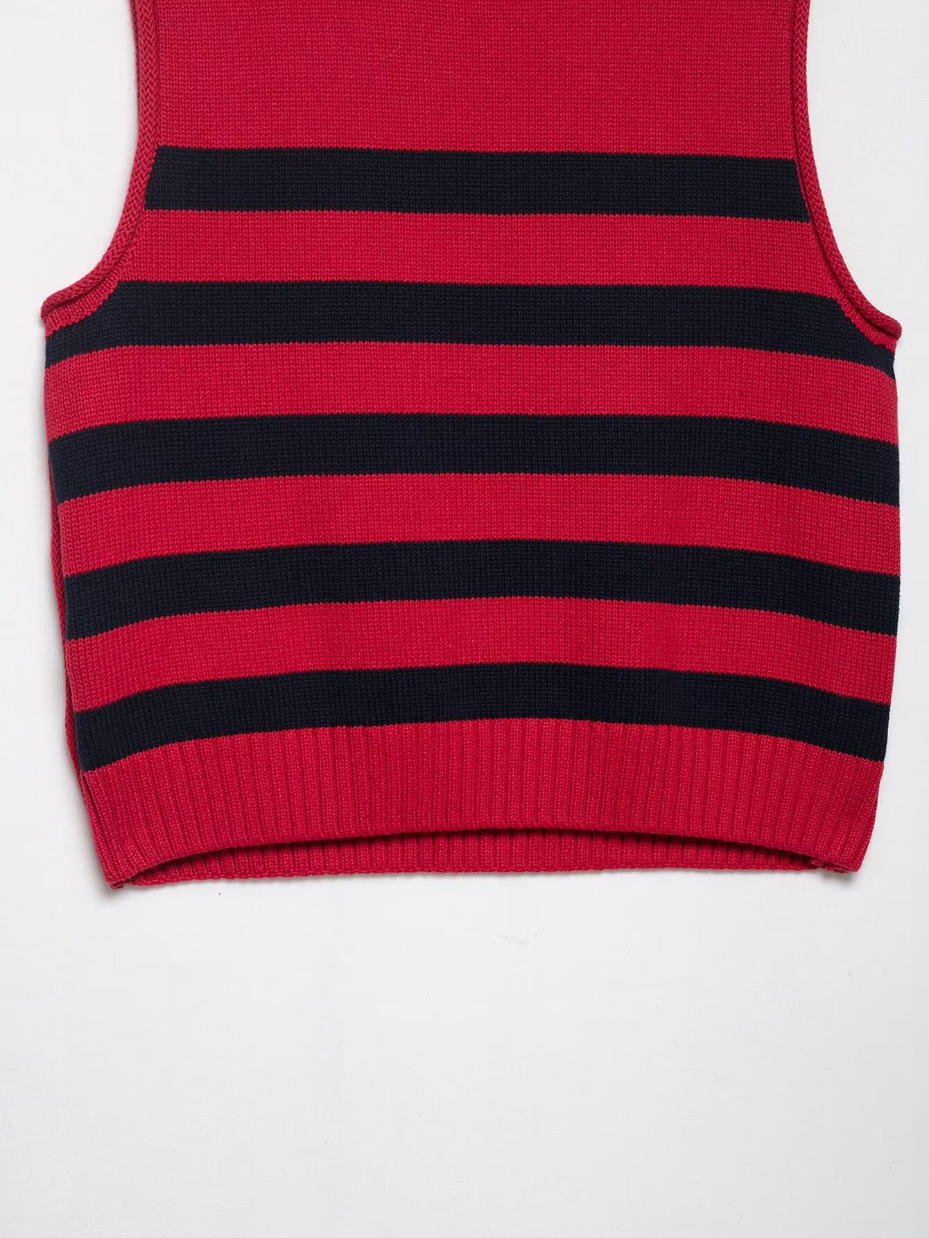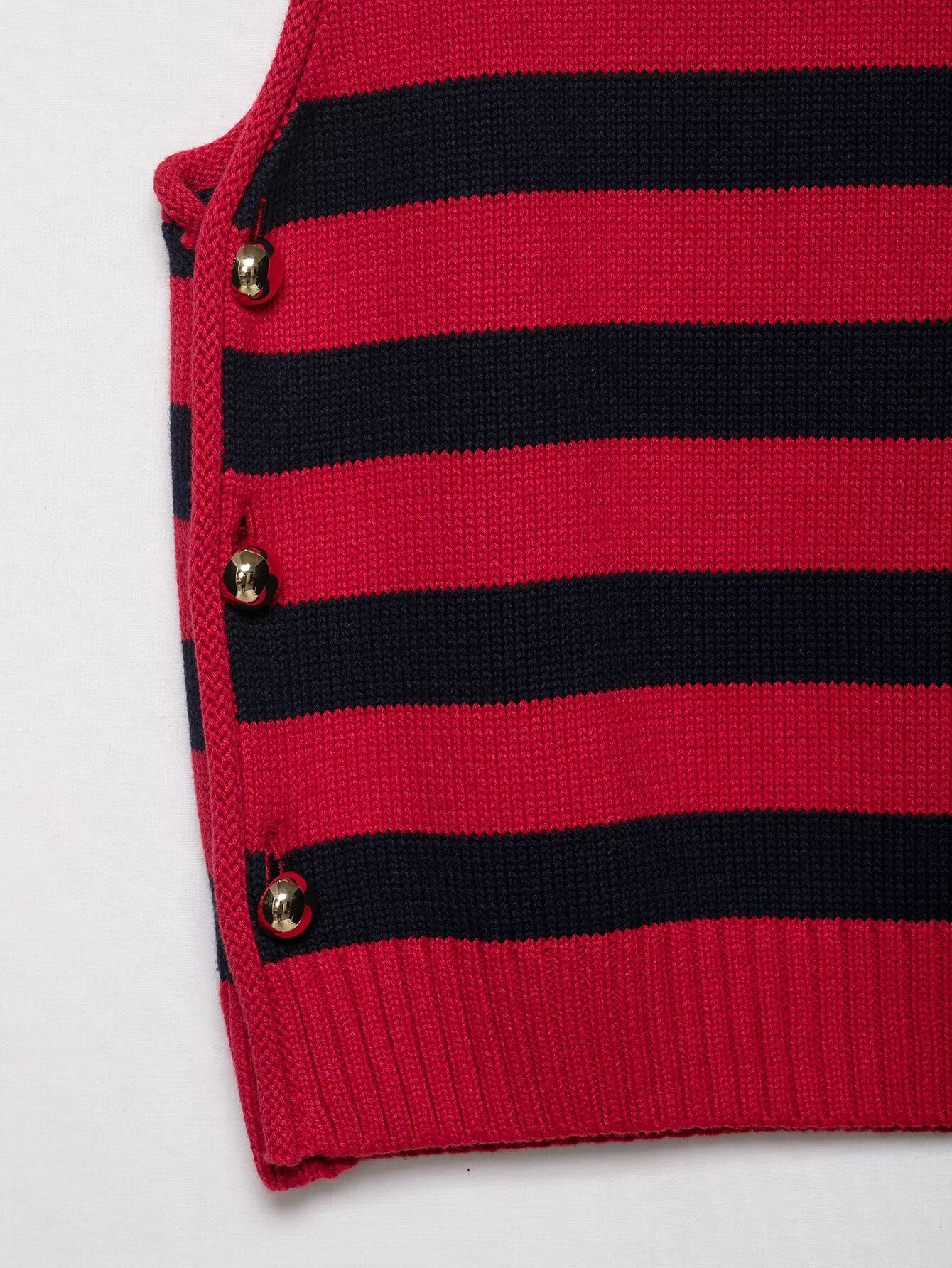Women Autumn Thick Needle Vest Bandage Dress Button round Neck Sleeveless Waistcoat Knitted Striped Vest
