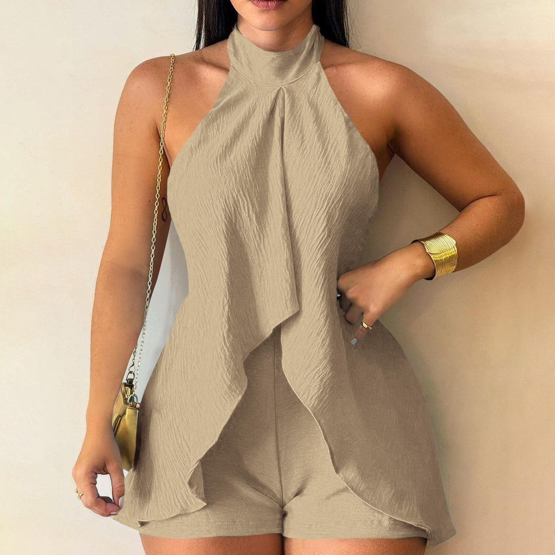 Women Clothing Cold Shoulder Sleeveless Halter Backless Jumpsuit Casual Women Pants
