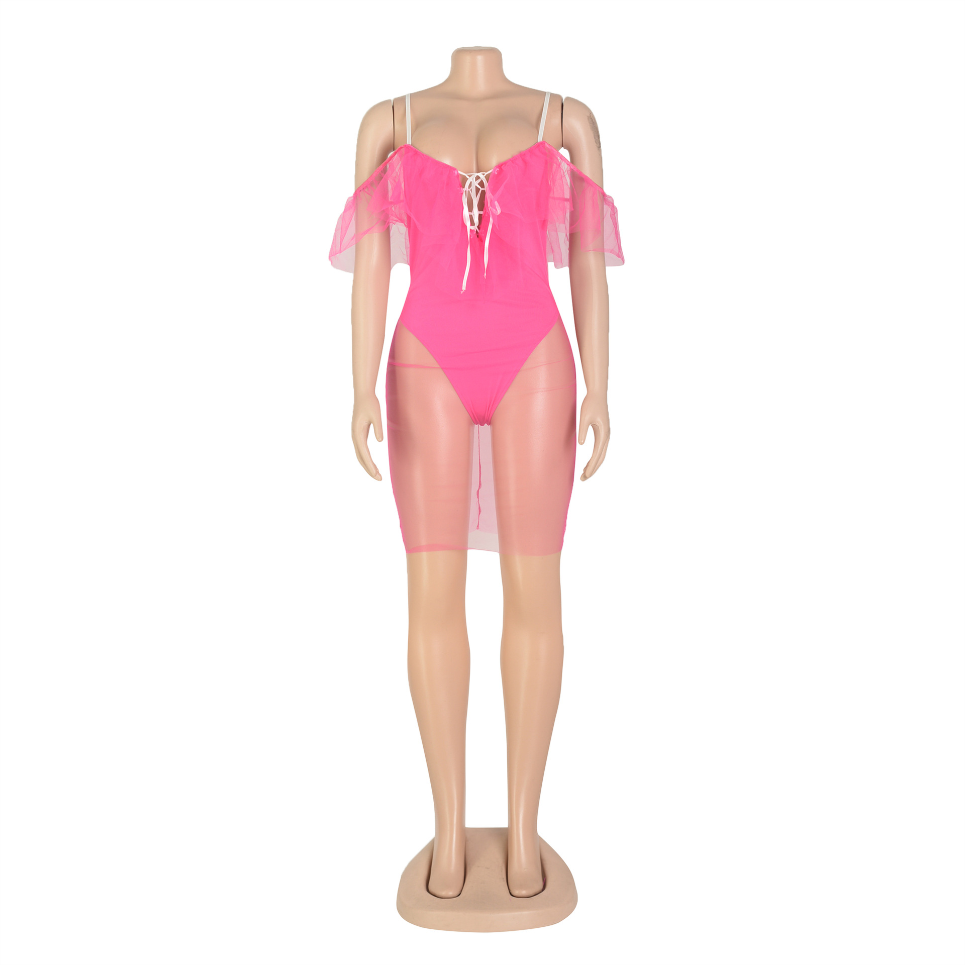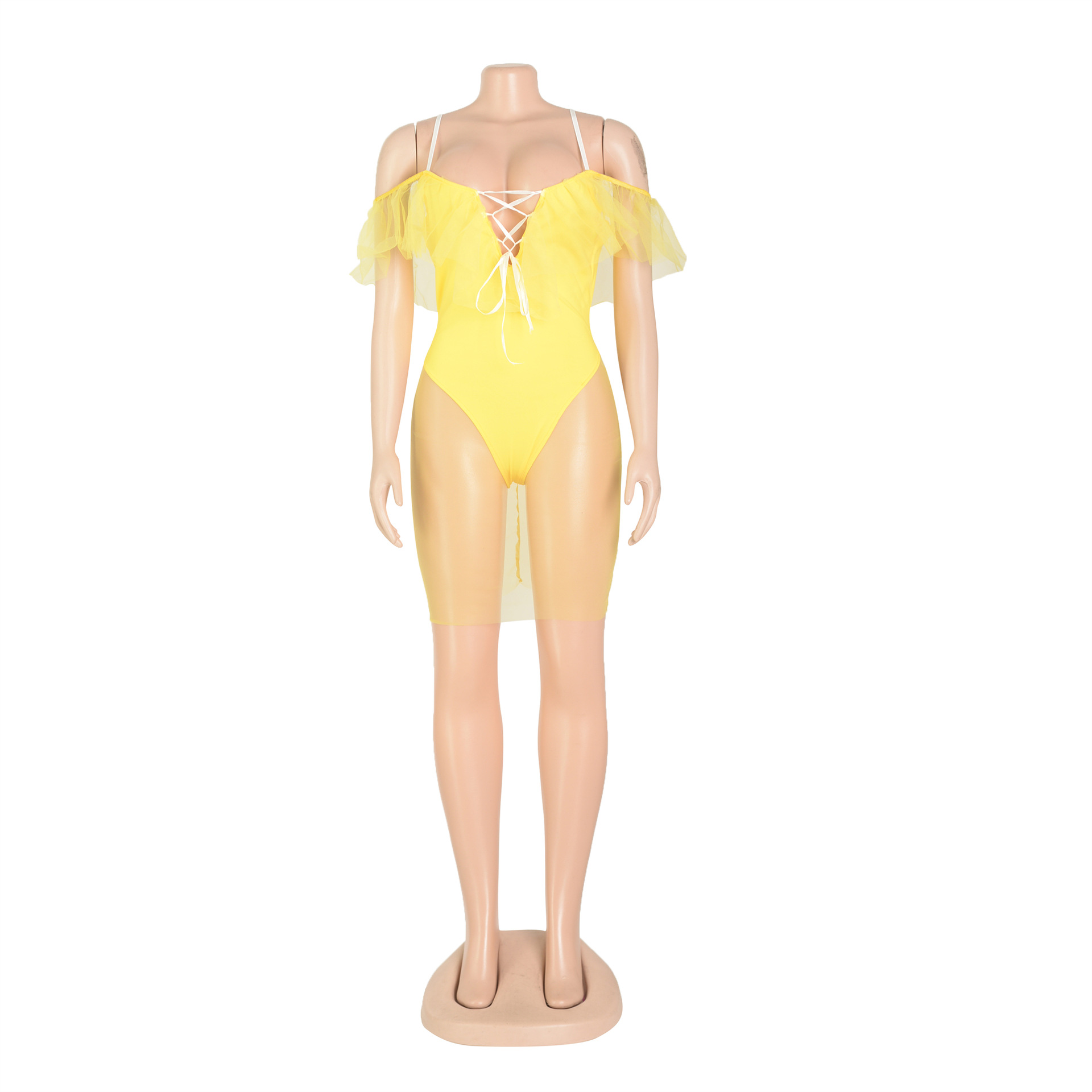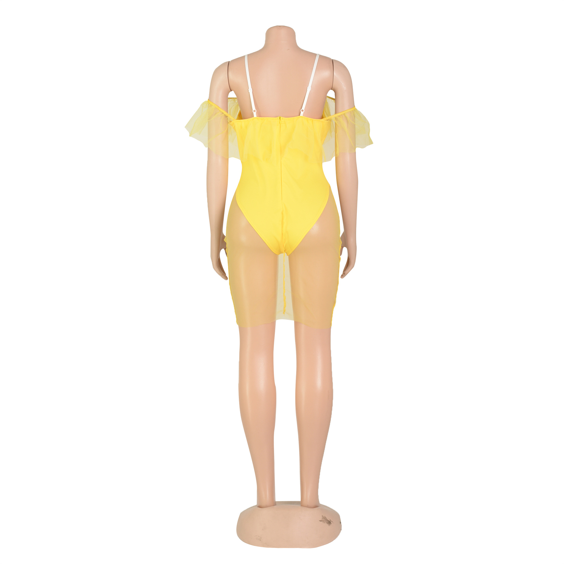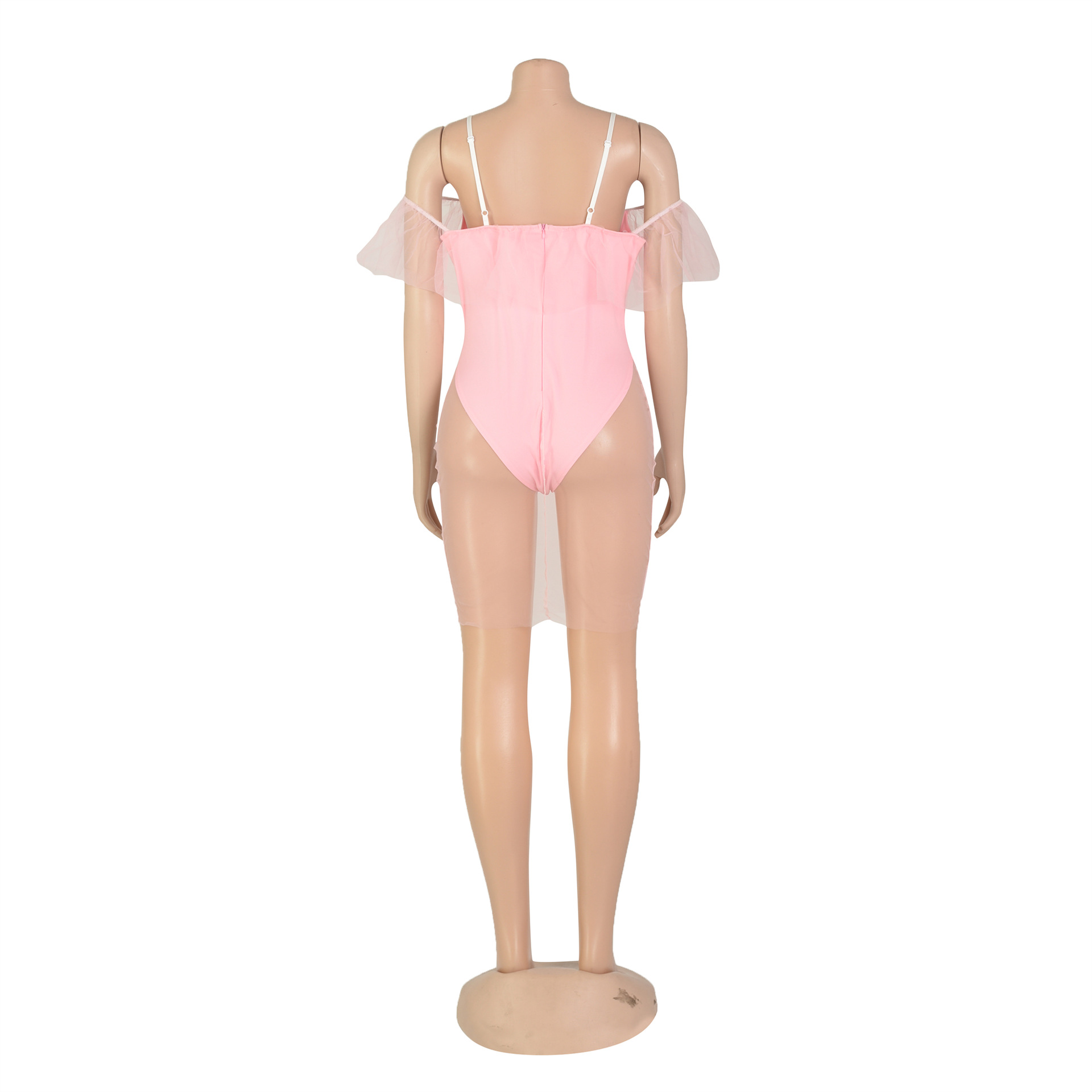 Women Clothing Jumpsuit Swimsuit Mesh Stitching Sleeveless Tight Sexy Sexy