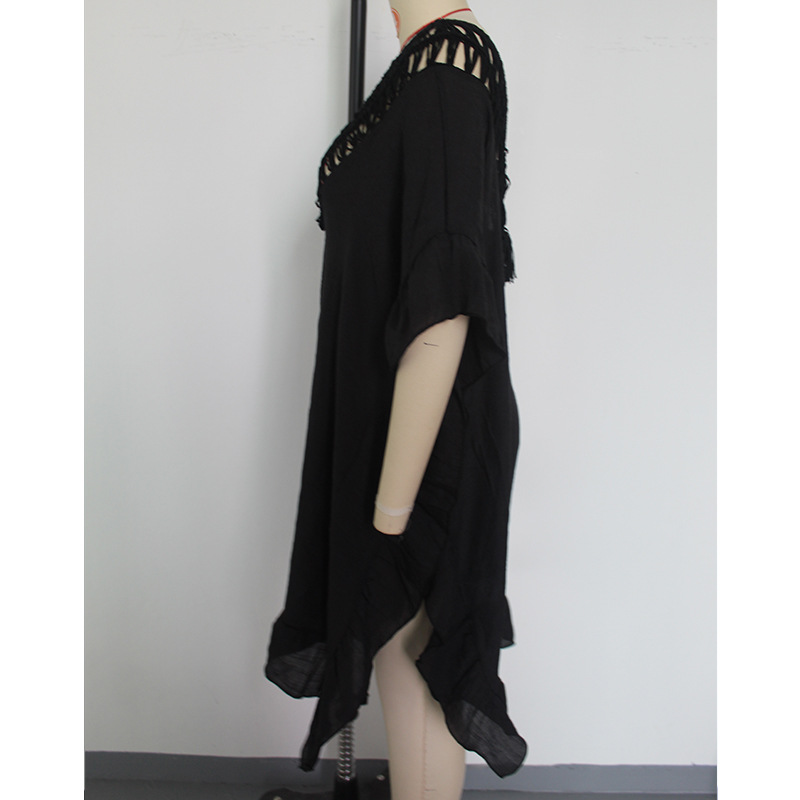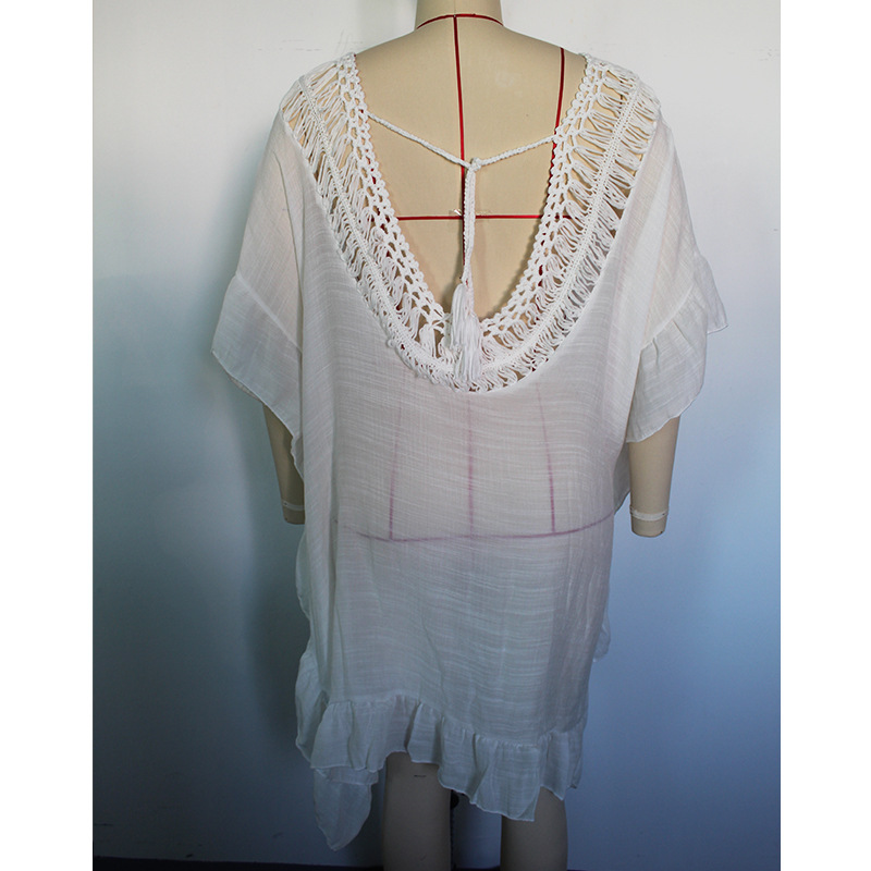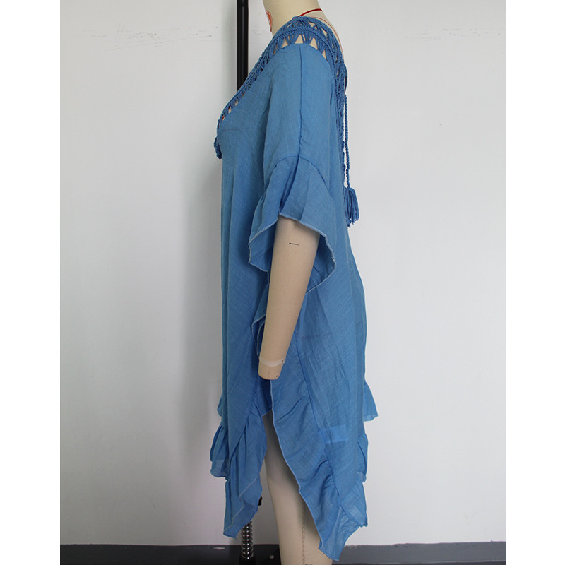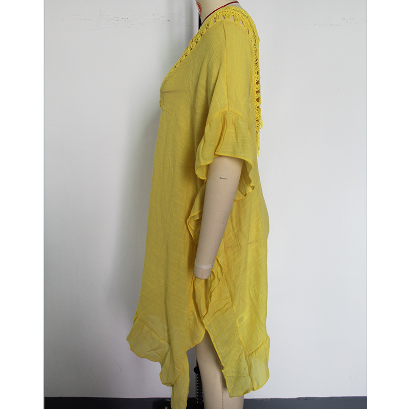 Women Clothing Multi Color Flounced Skirt Hem Hand Crocheting Collar Strap Exposed Back Sexy Sun Protection Casual Short Hollow Out Cutout Cardigan