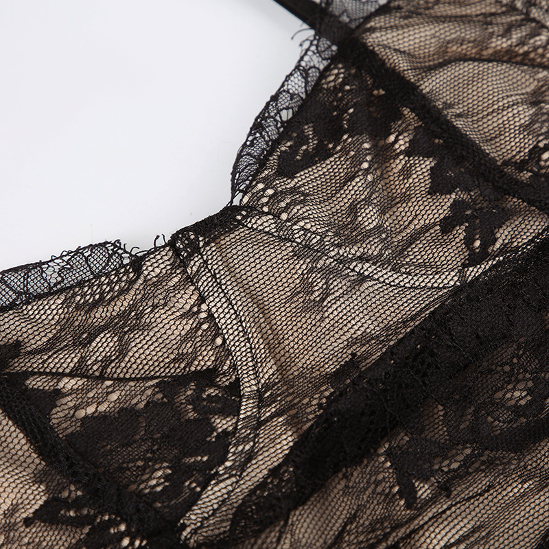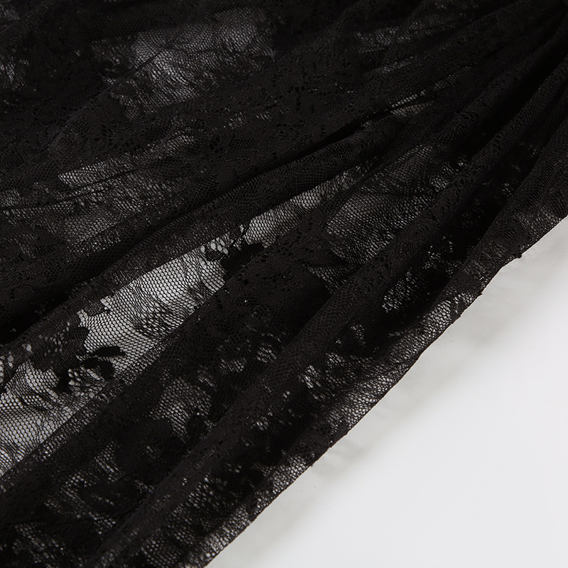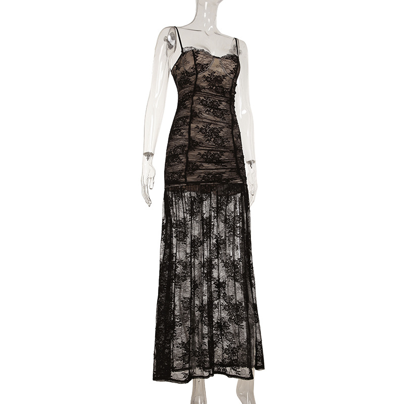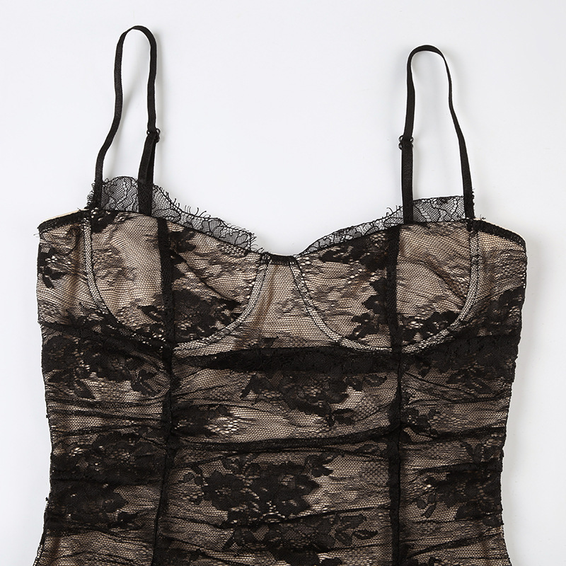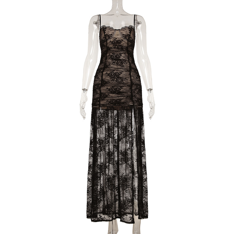 Women Clothing See through Lace Split Pleated Sling Elegant Dress Holiday Sheath Dress