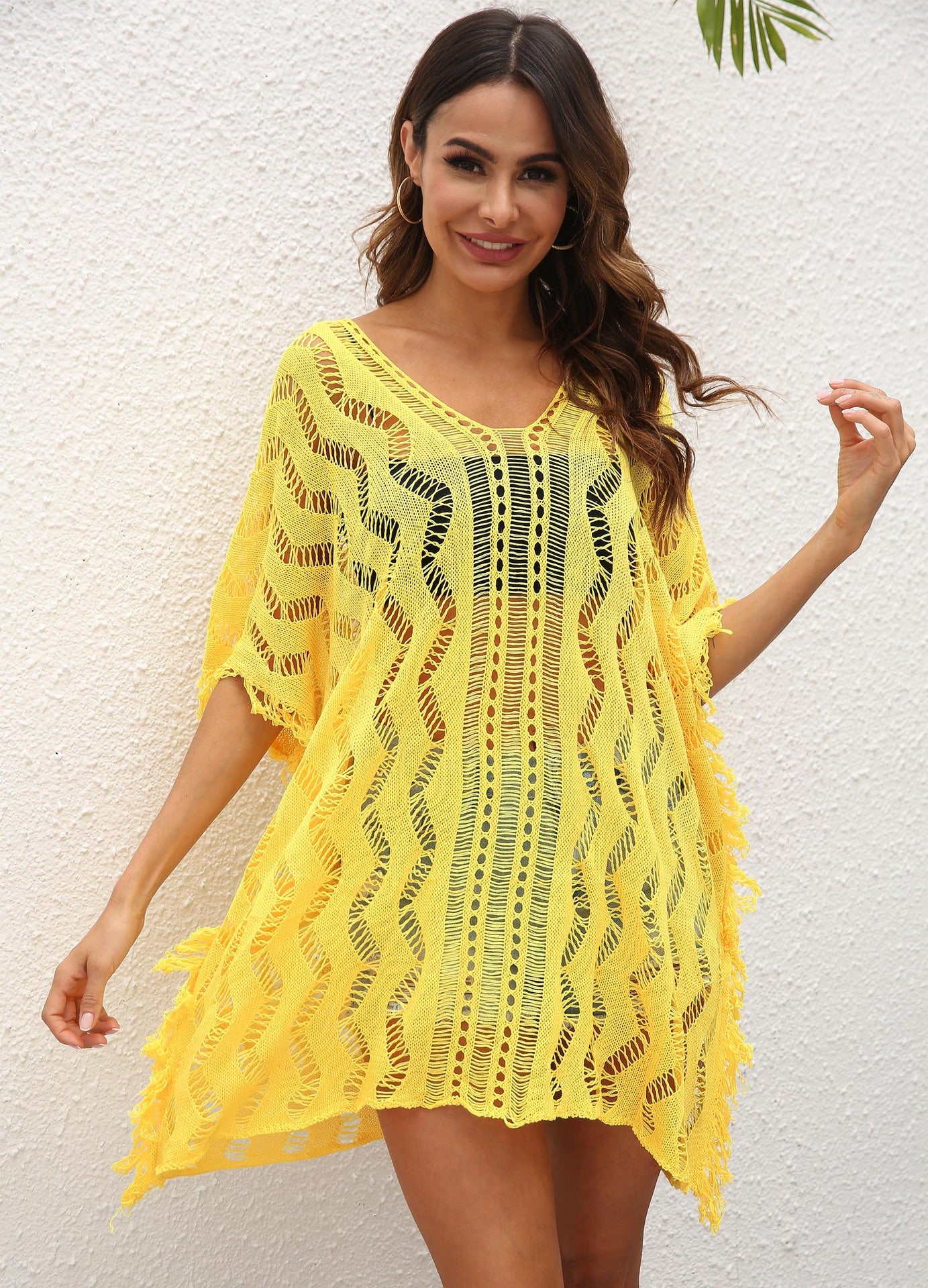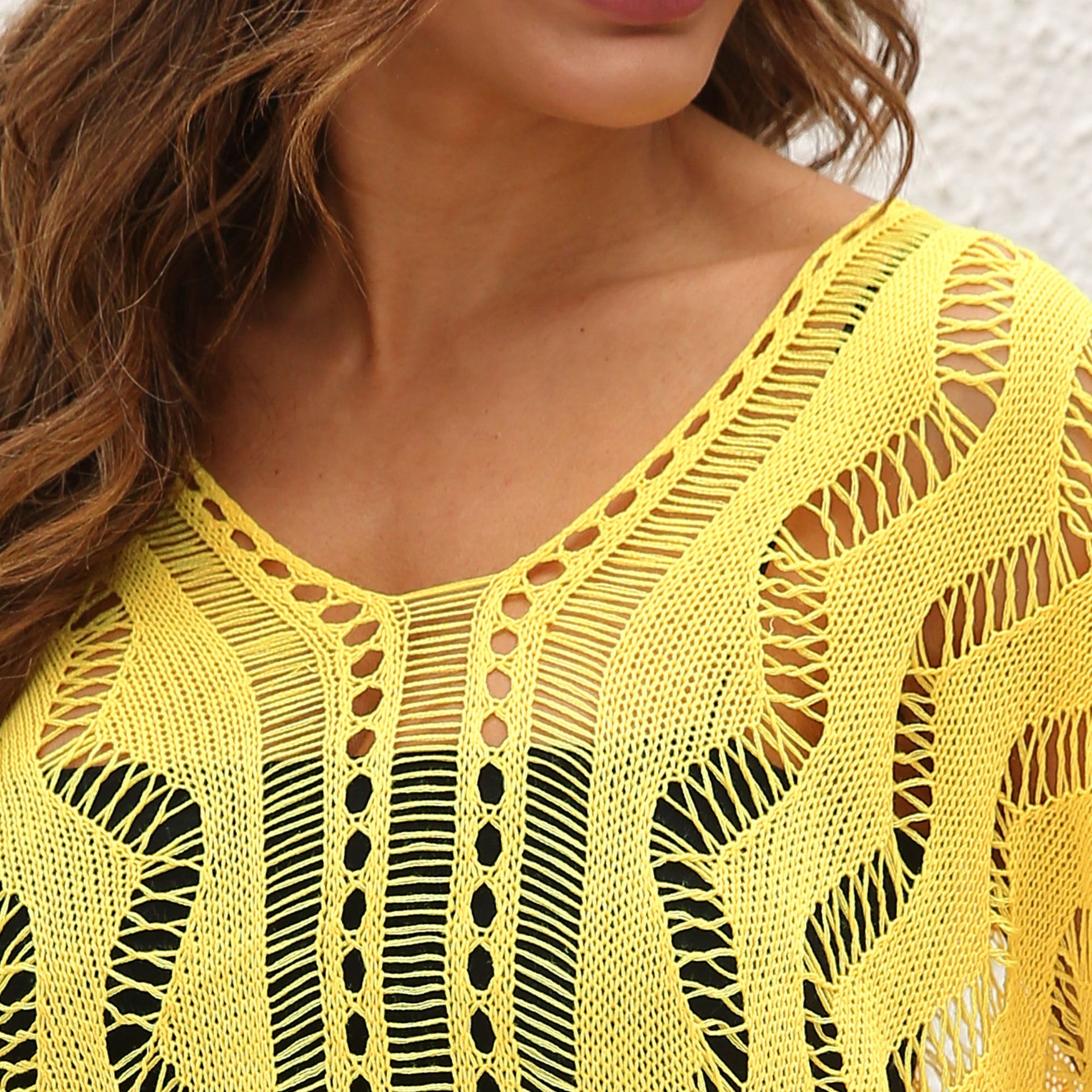 Women Clothing Sexy Hollow Out Cutout See-through Woven Blouse Wave Pattern Loose Beach Dress for Women