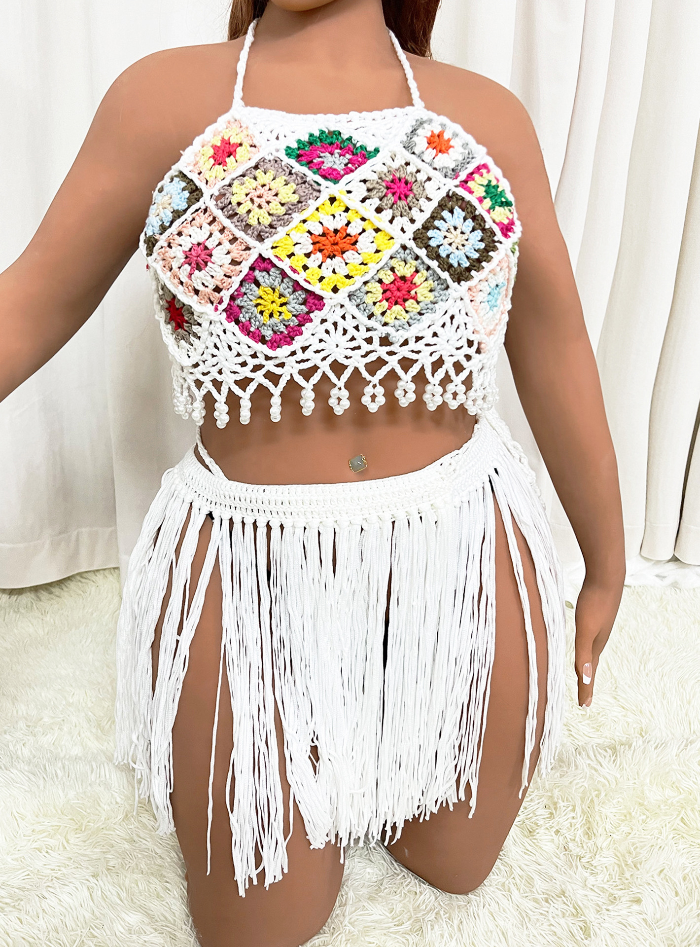 Women Clothing Sexy See through Pure Hand Crocheting Stitching Long Fringe Beach Skirt