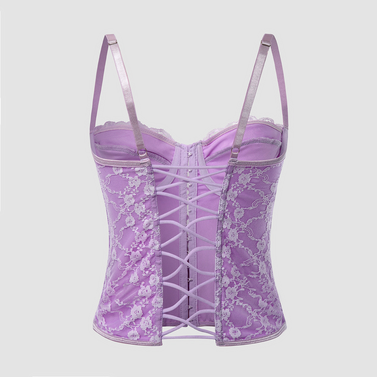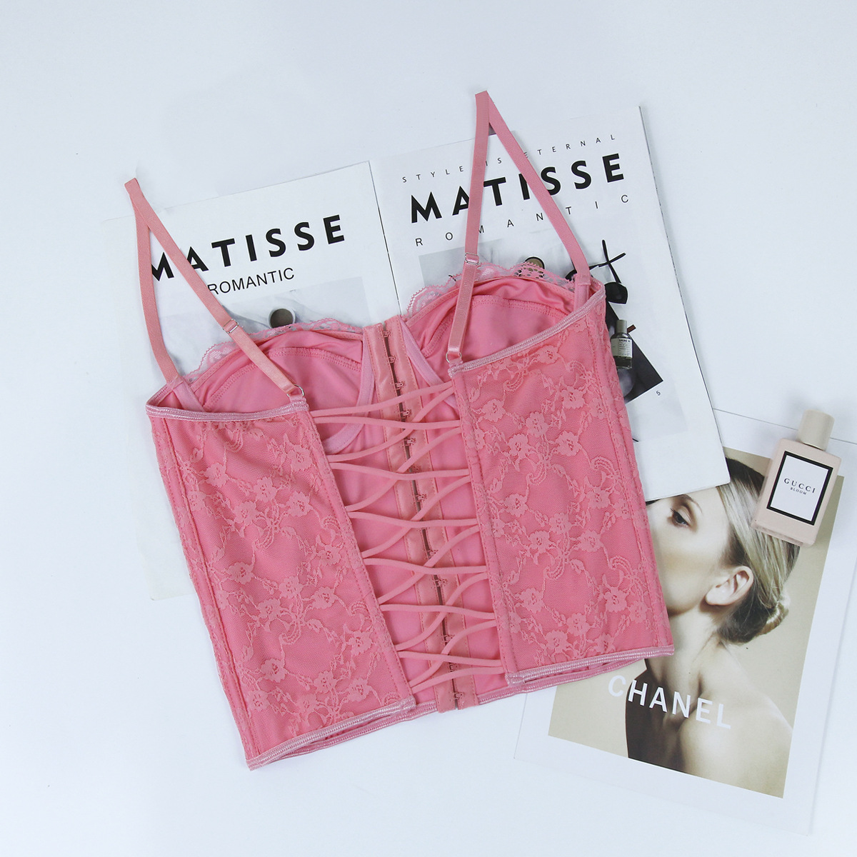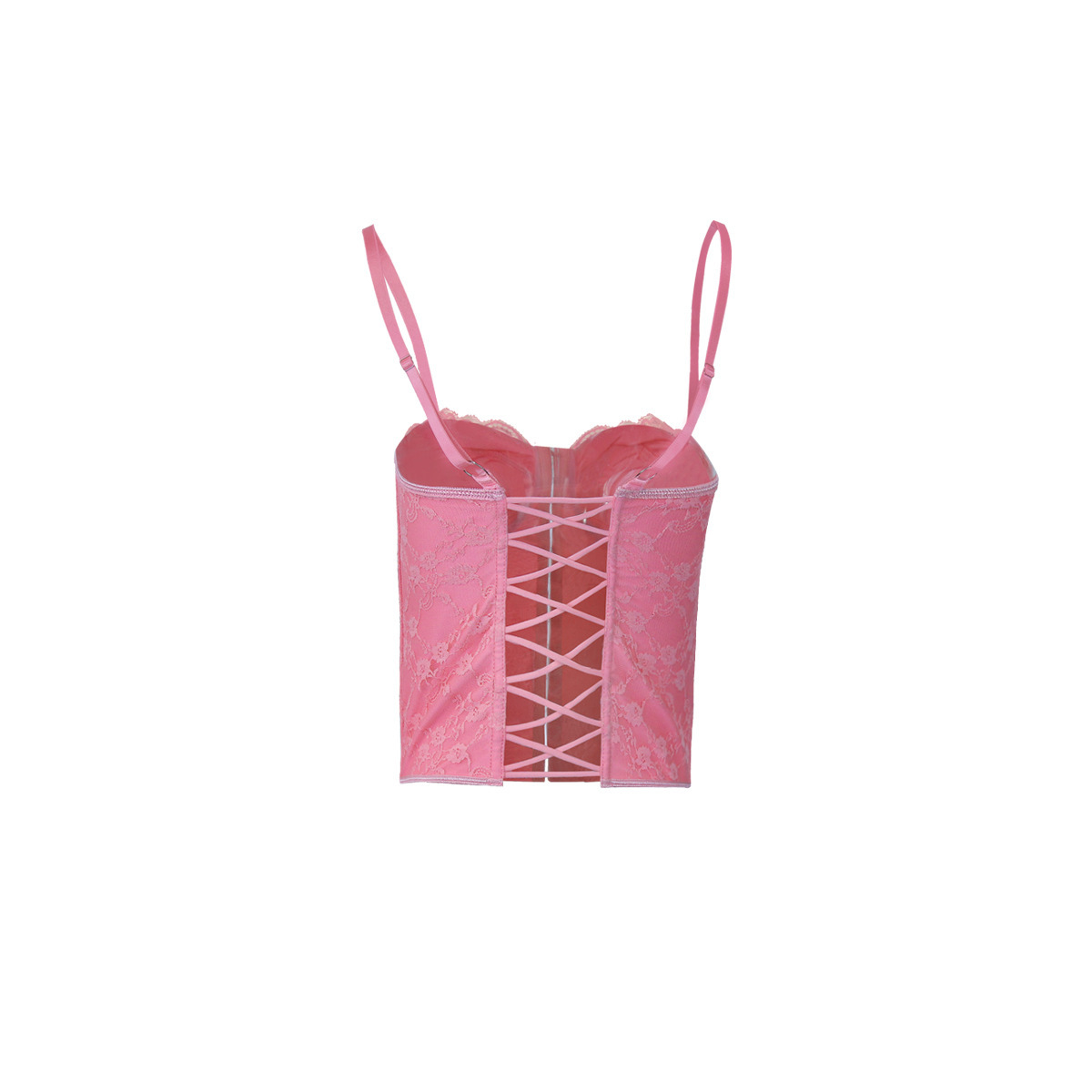 Women Clothing Sexy Solid Color Lace Sling Boning Corset Steel Ring Wrapped Chest Breasted Backless Vest