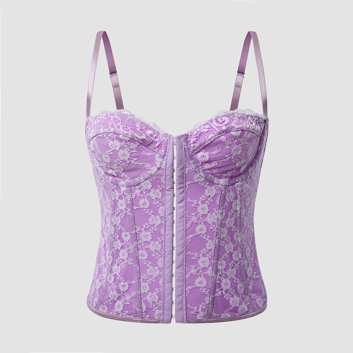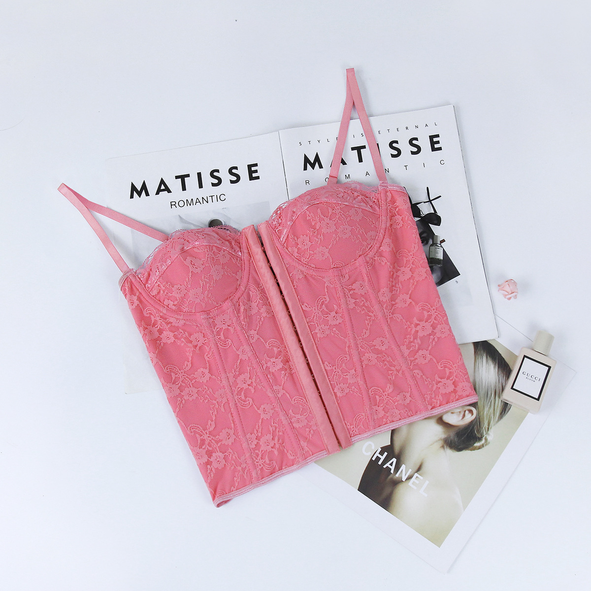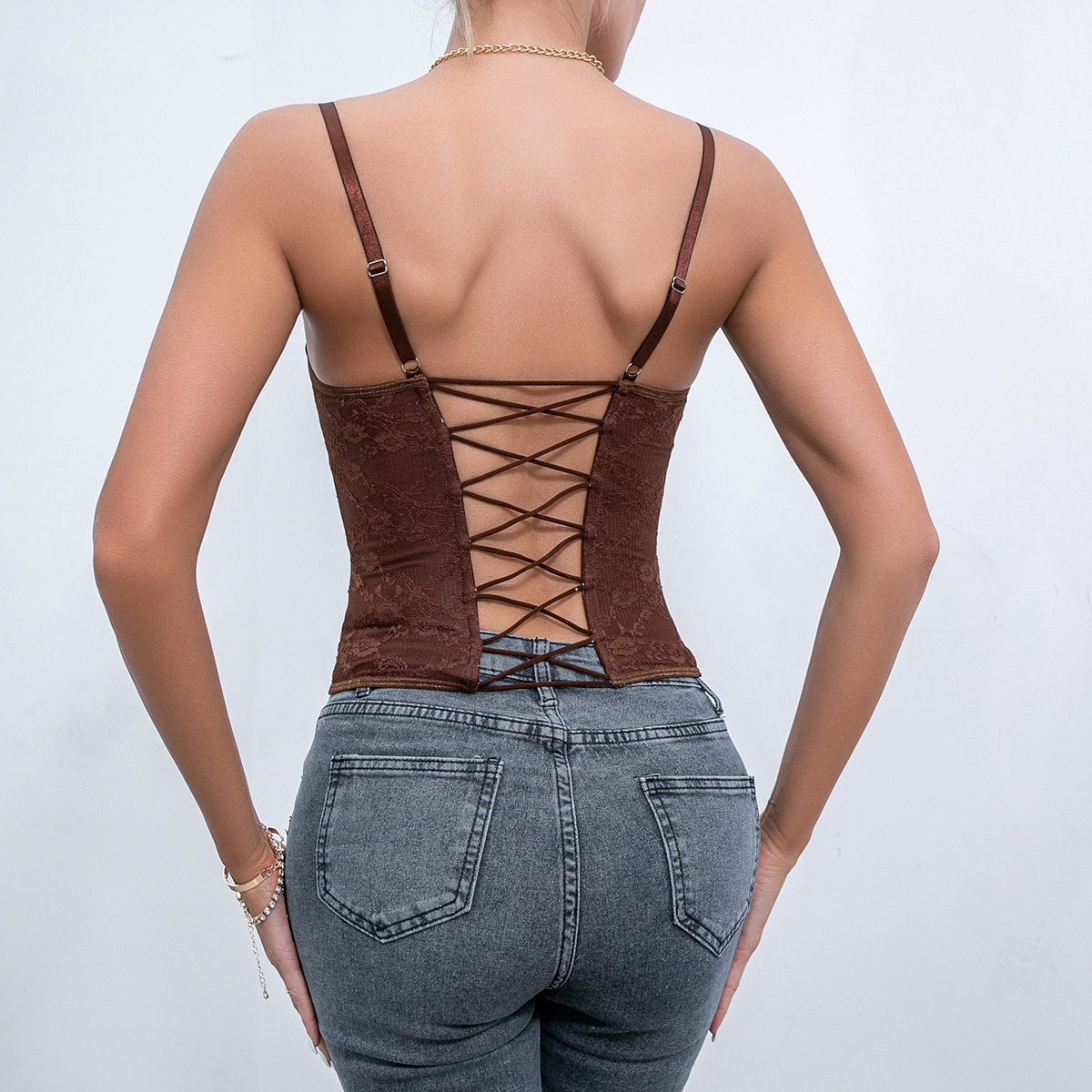 Women Clothing Sexy Solid Color Lace Sling Boning Corset Steel Ring Wrapped Chest Breasted Backless Vest