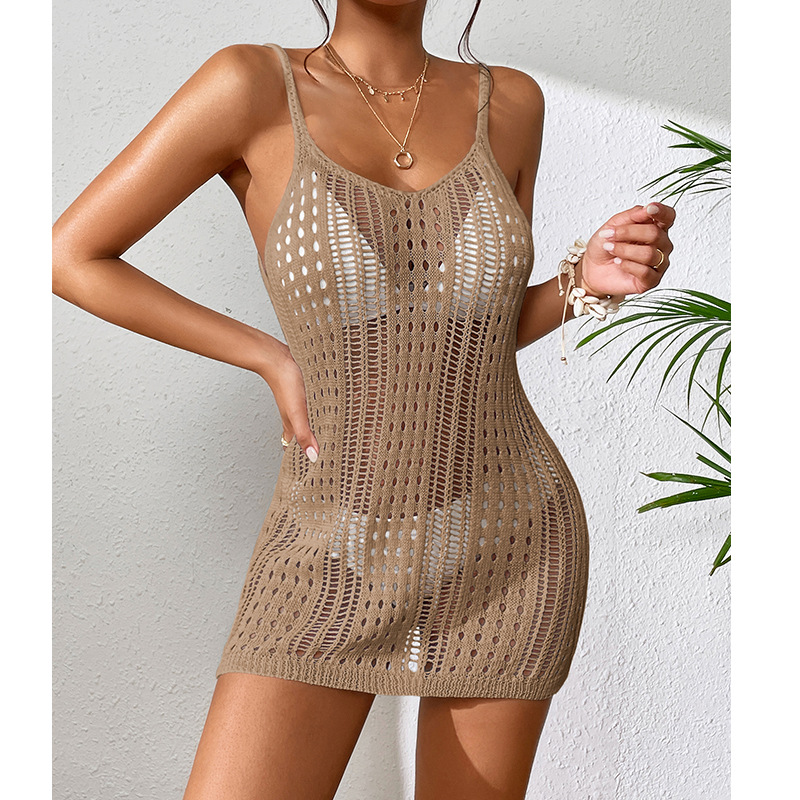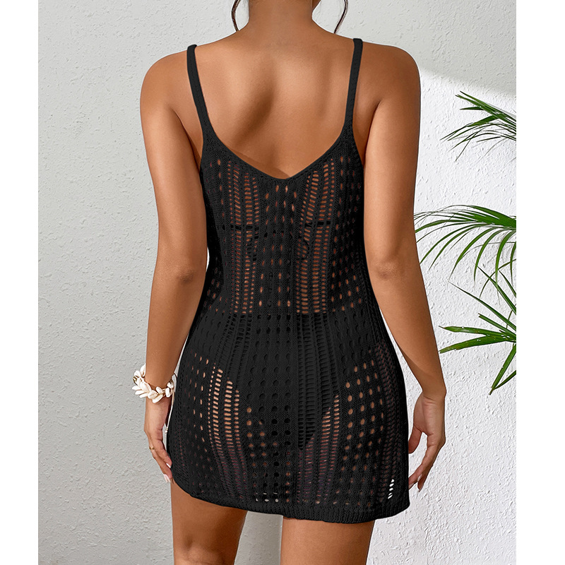 Women Clothing Short Knitted Texture Hollow Out Cutout Out See Through Camisole Sexy Short Dress Knitted Beach Dress Crochet hook