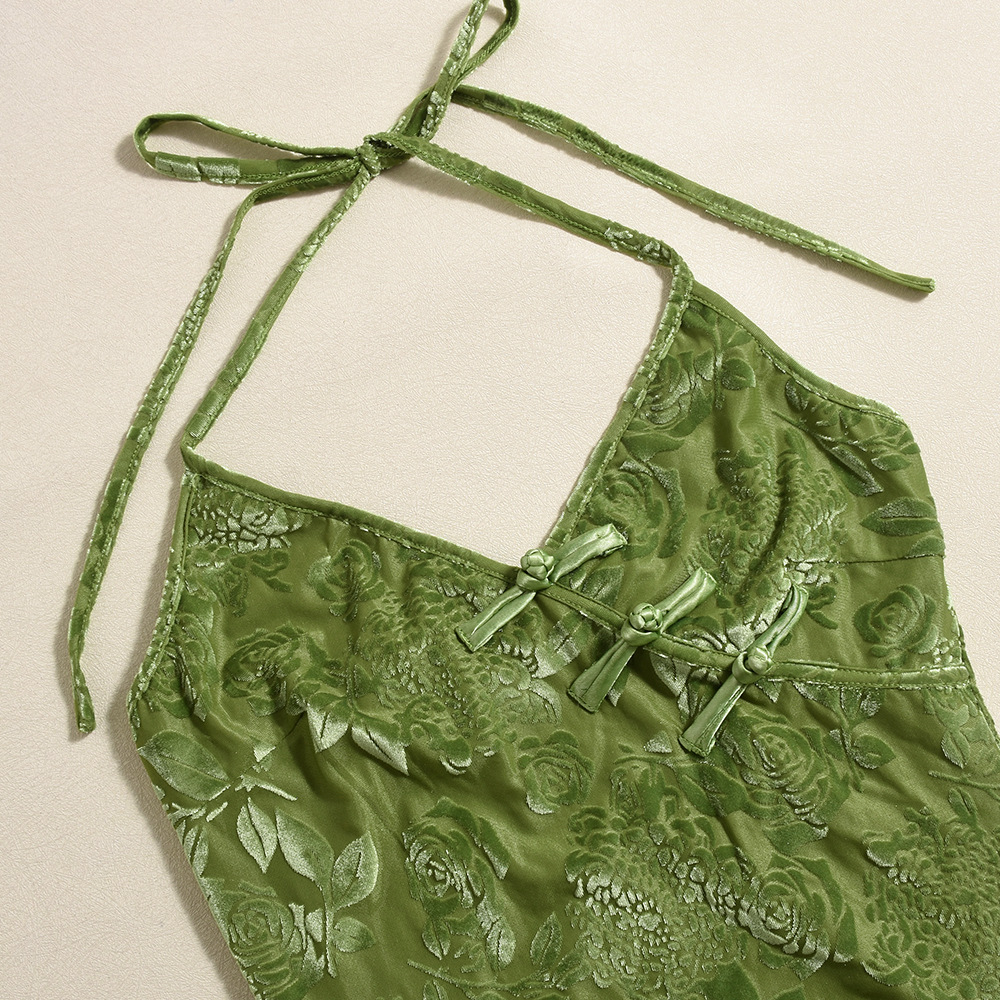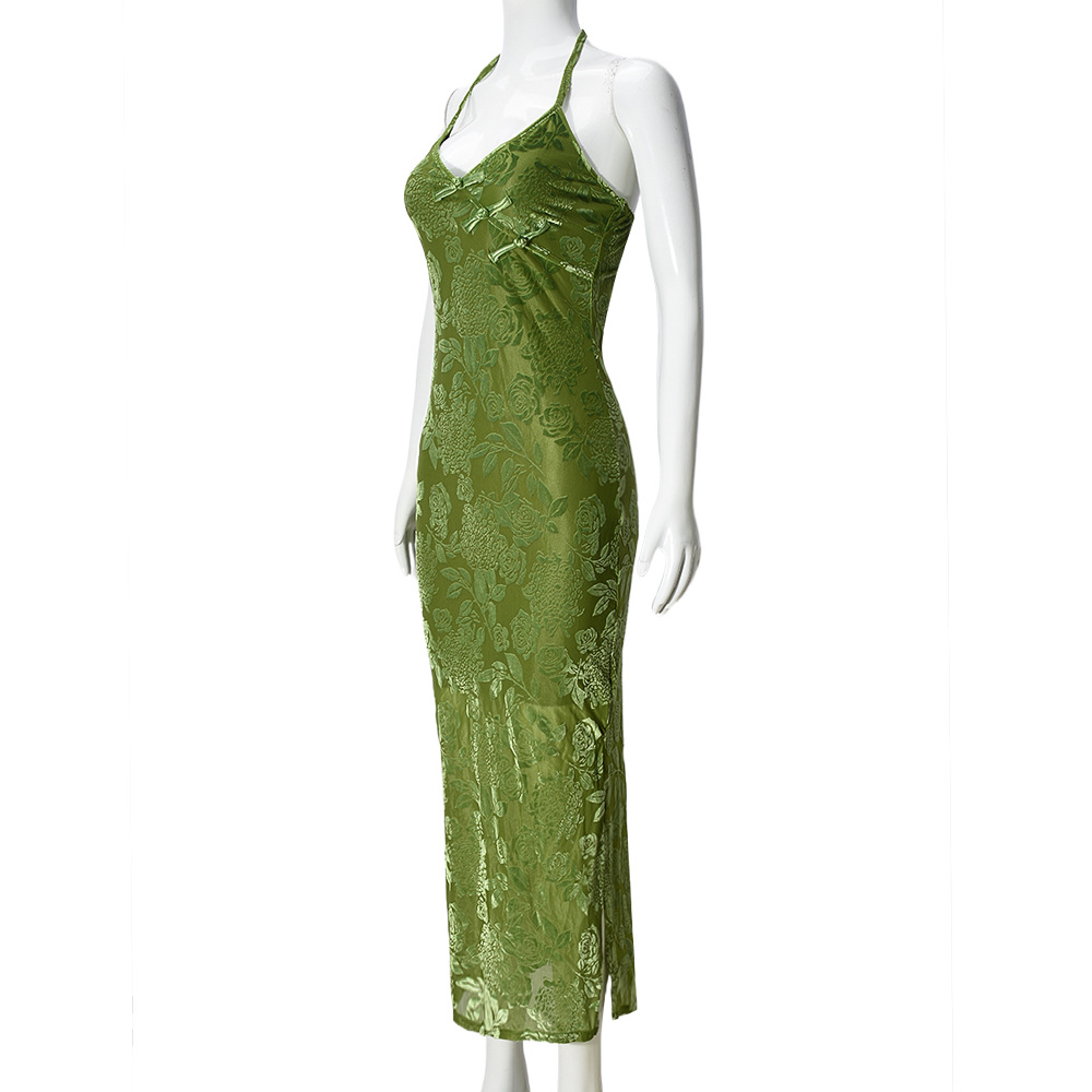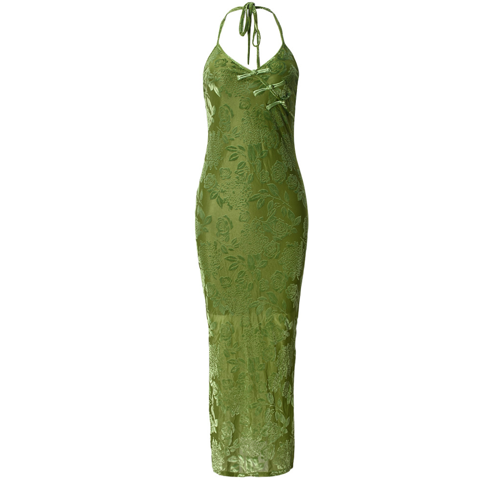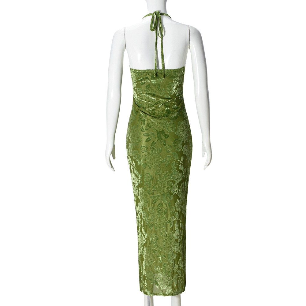 Women Clothing Spring Floral Halter Backless Office Midi Dress
