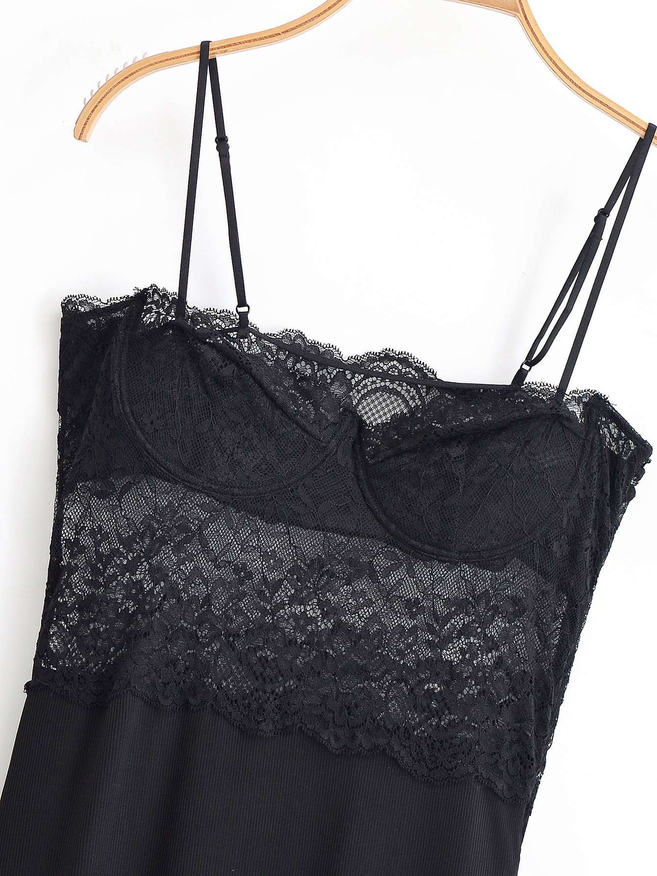 Women Clothing Spring Sexy Lace Splicing Sling Dress