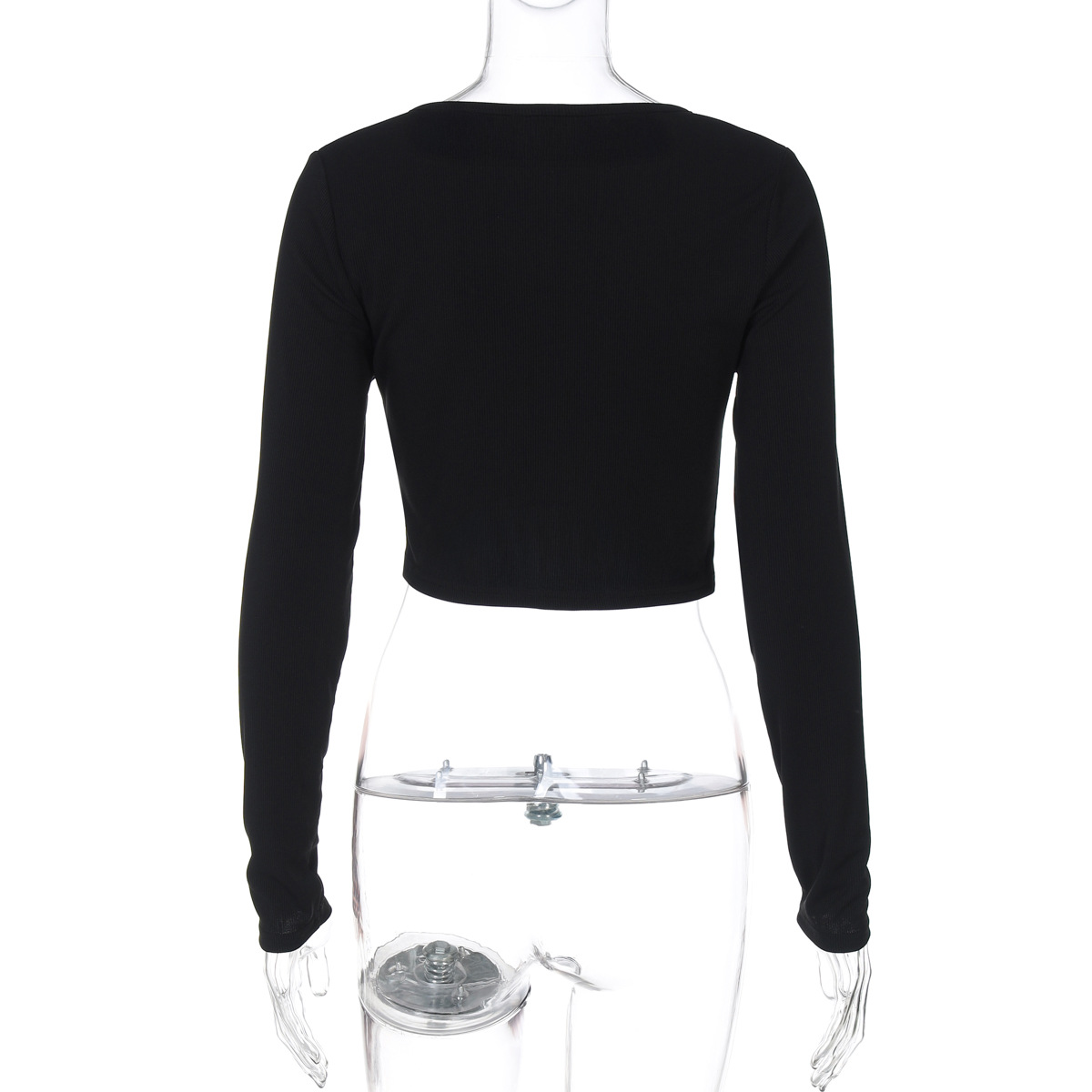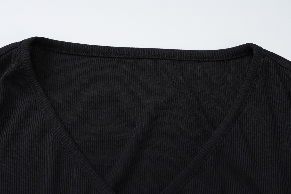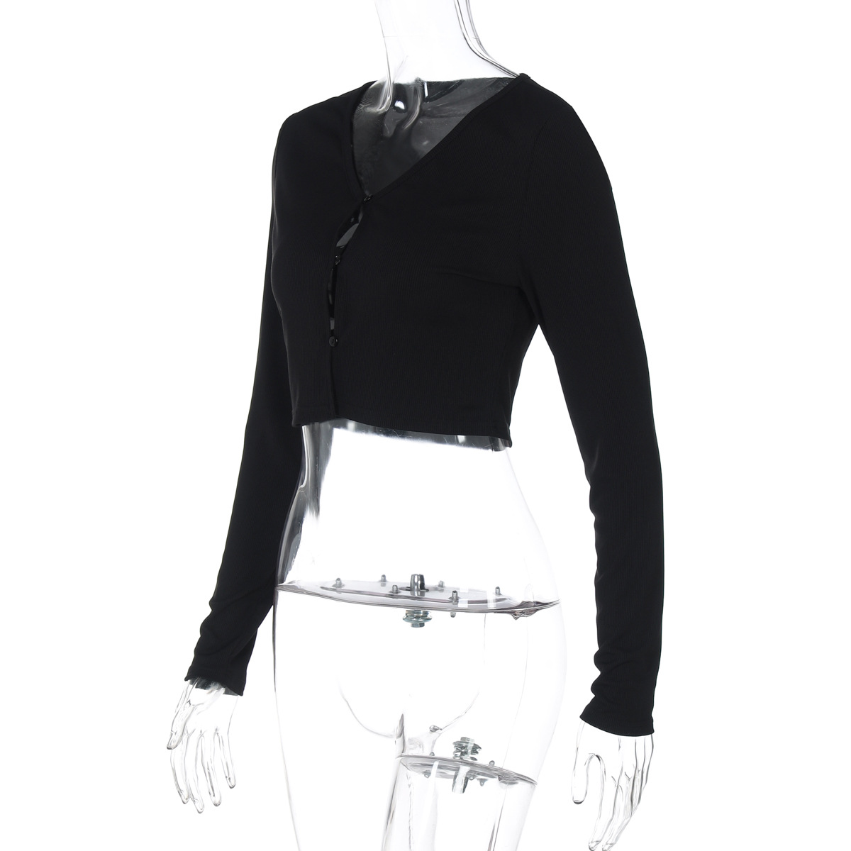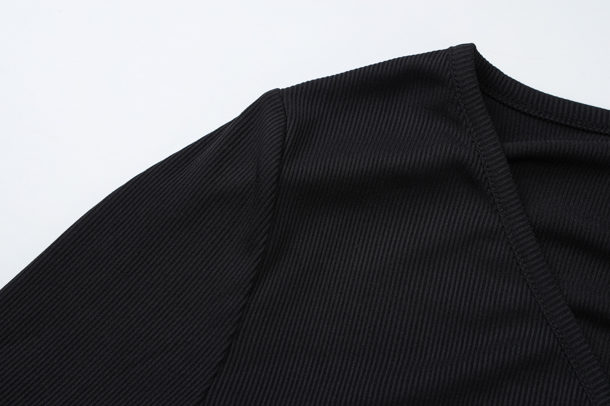 Women Clothing Summer Sexy Cardigan Button Cropped Long Sleeve T shirt Top