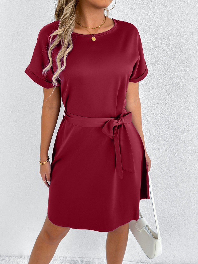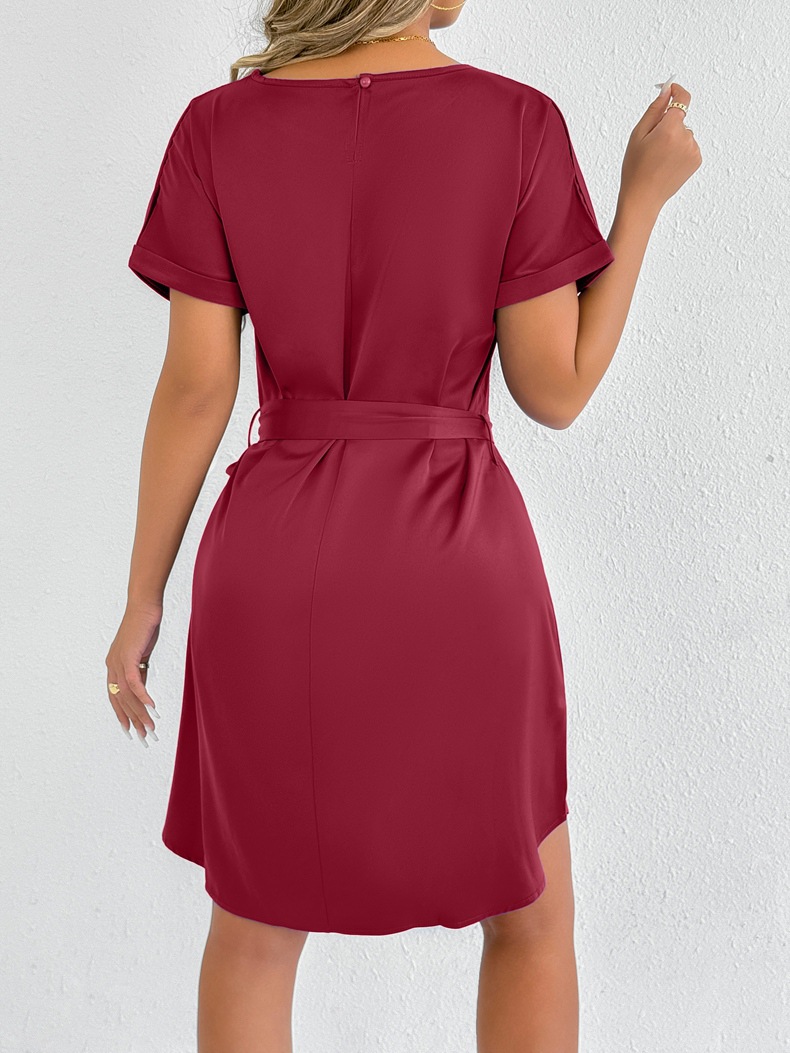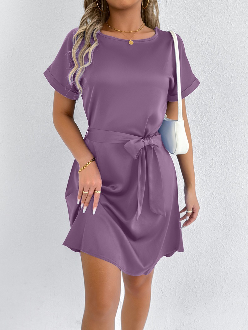 Women Clothing Summer Short Sleeve Satin Dress High Grade Small Satin Dress