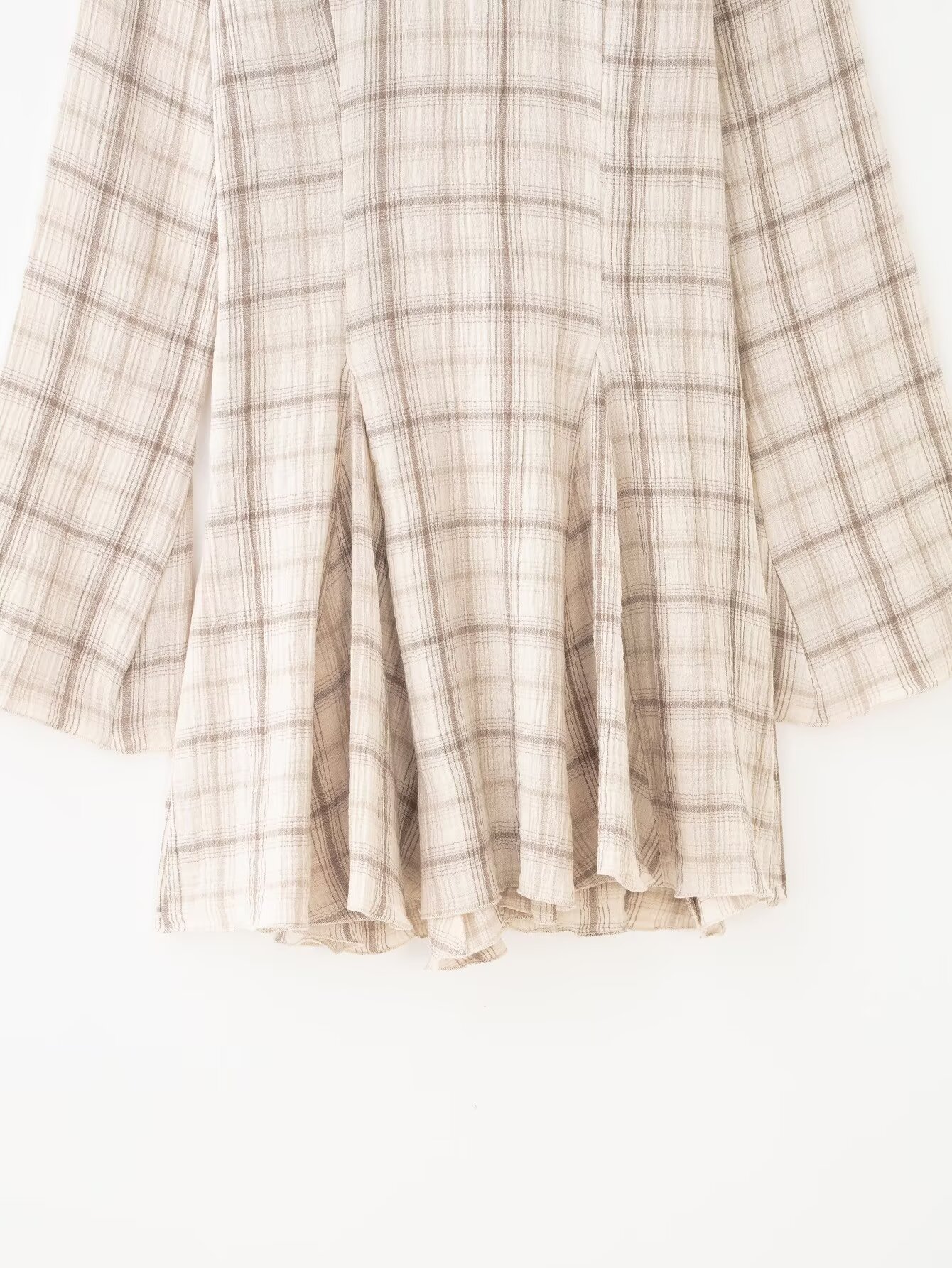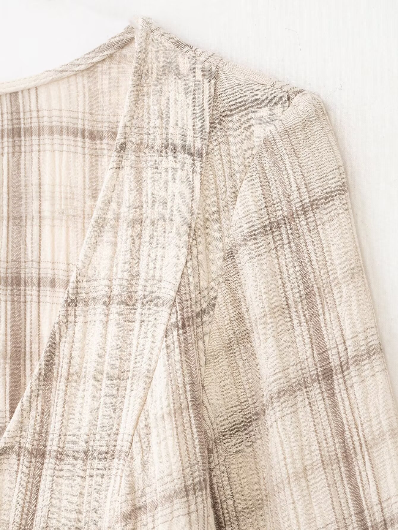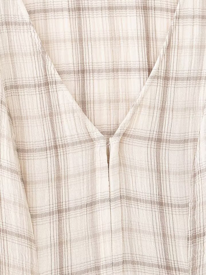 Women Clothing Western Long Sleeve V neck Plaid Short Dress
