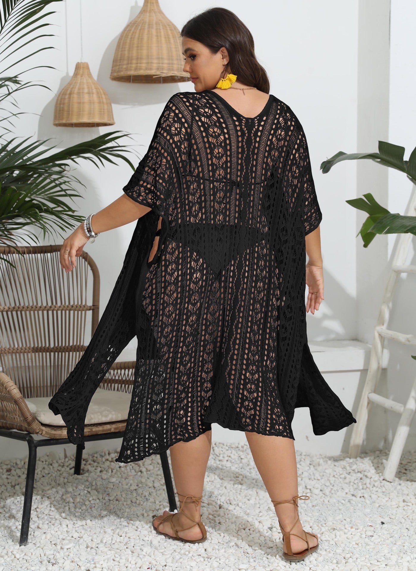Women Coat Women Clothes Sexy Cutout Woven Bikini Cover Up Short Sleeved Cardigan