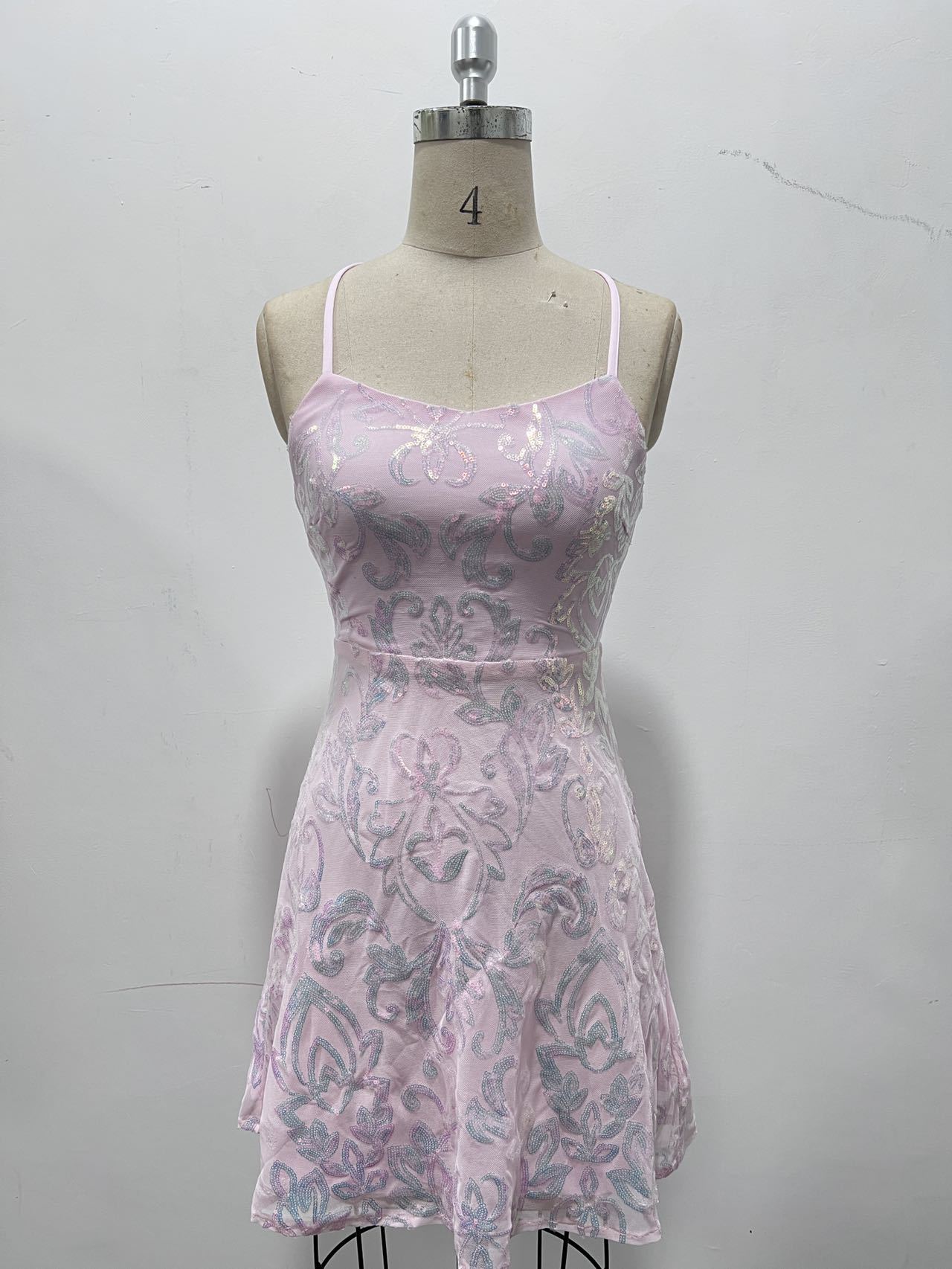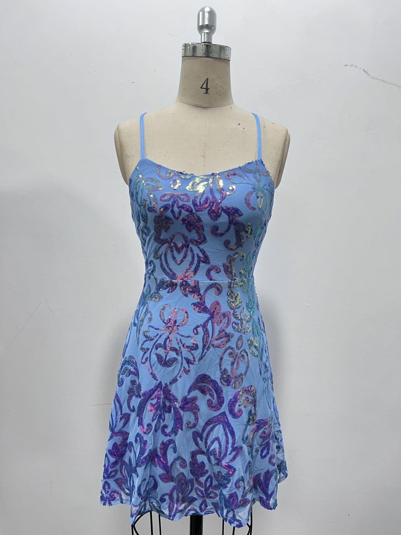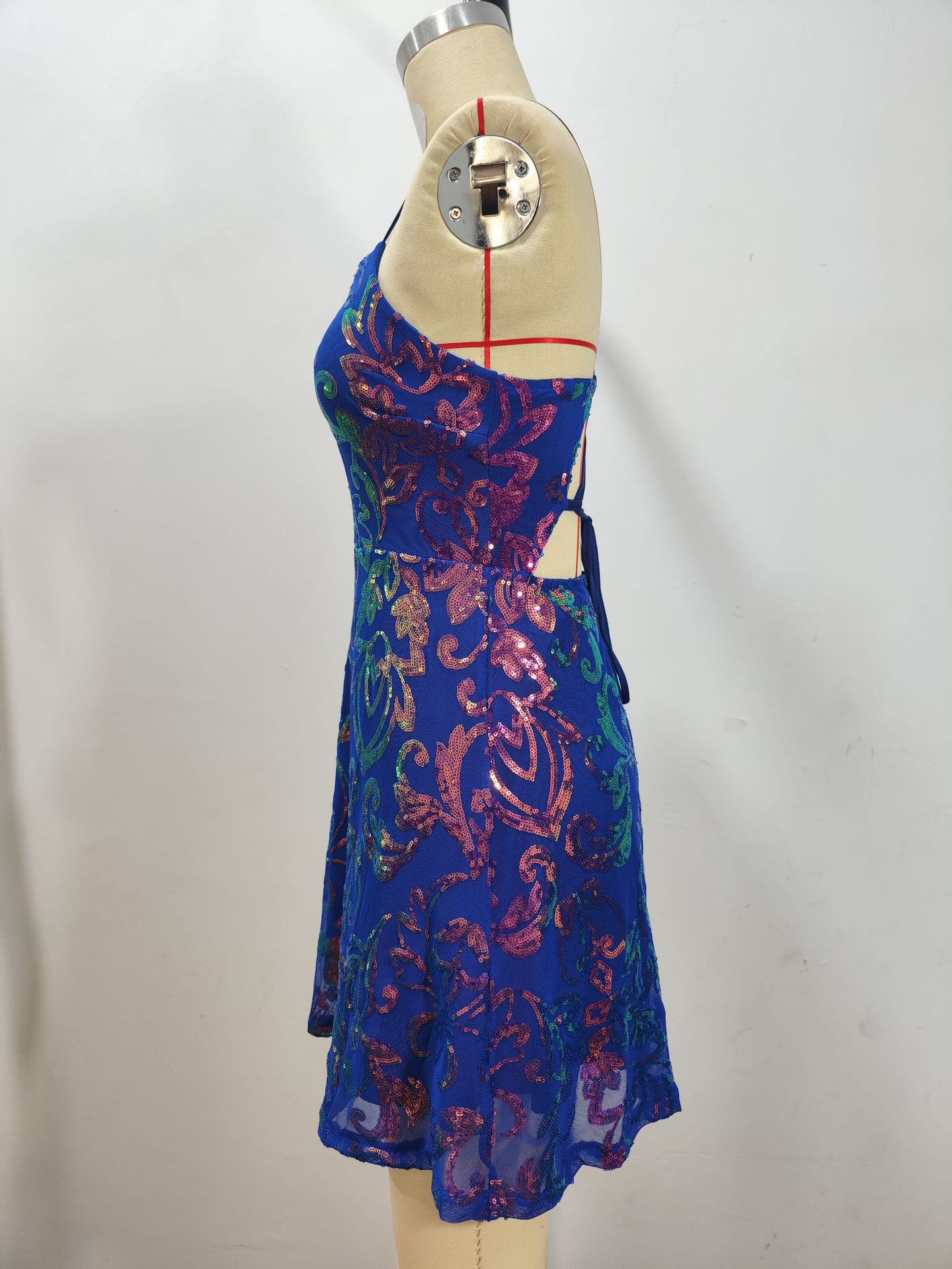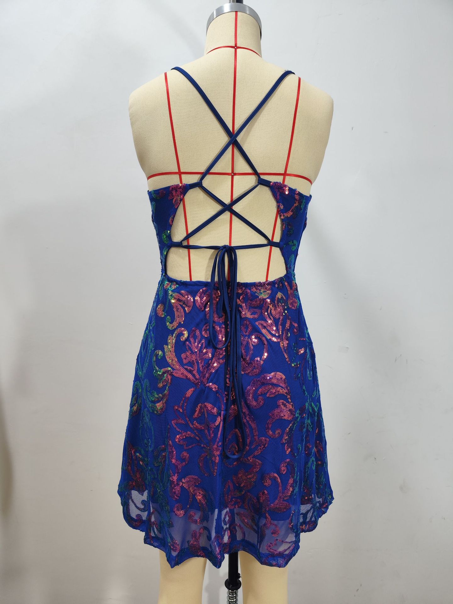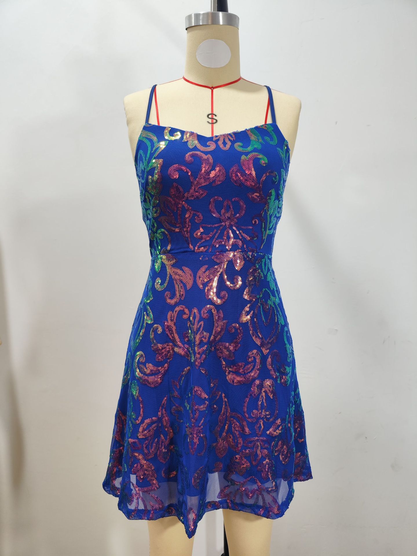 Women Flashing Sequ Loose Mini Dress Cocktail Party Strap Dress