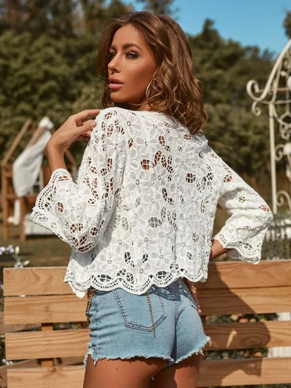 Women Spring and Summer Casual Elegant Lace Crochet Cardigan Jacket Crochet hook