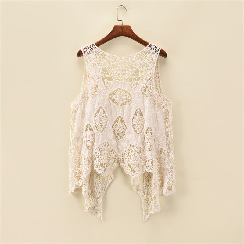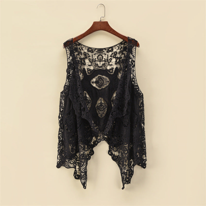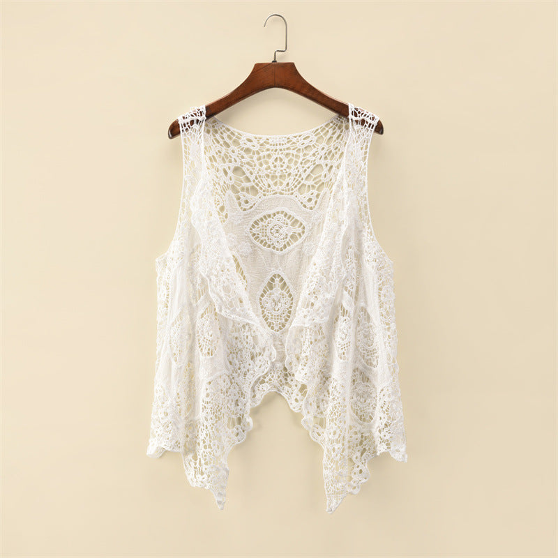 Women Summer Coat Thin Coat Sleeveless Lace Cardigan All Match Shawl Beachwear Sun Protection Clothing Women Hollow Out Cutout Shirt