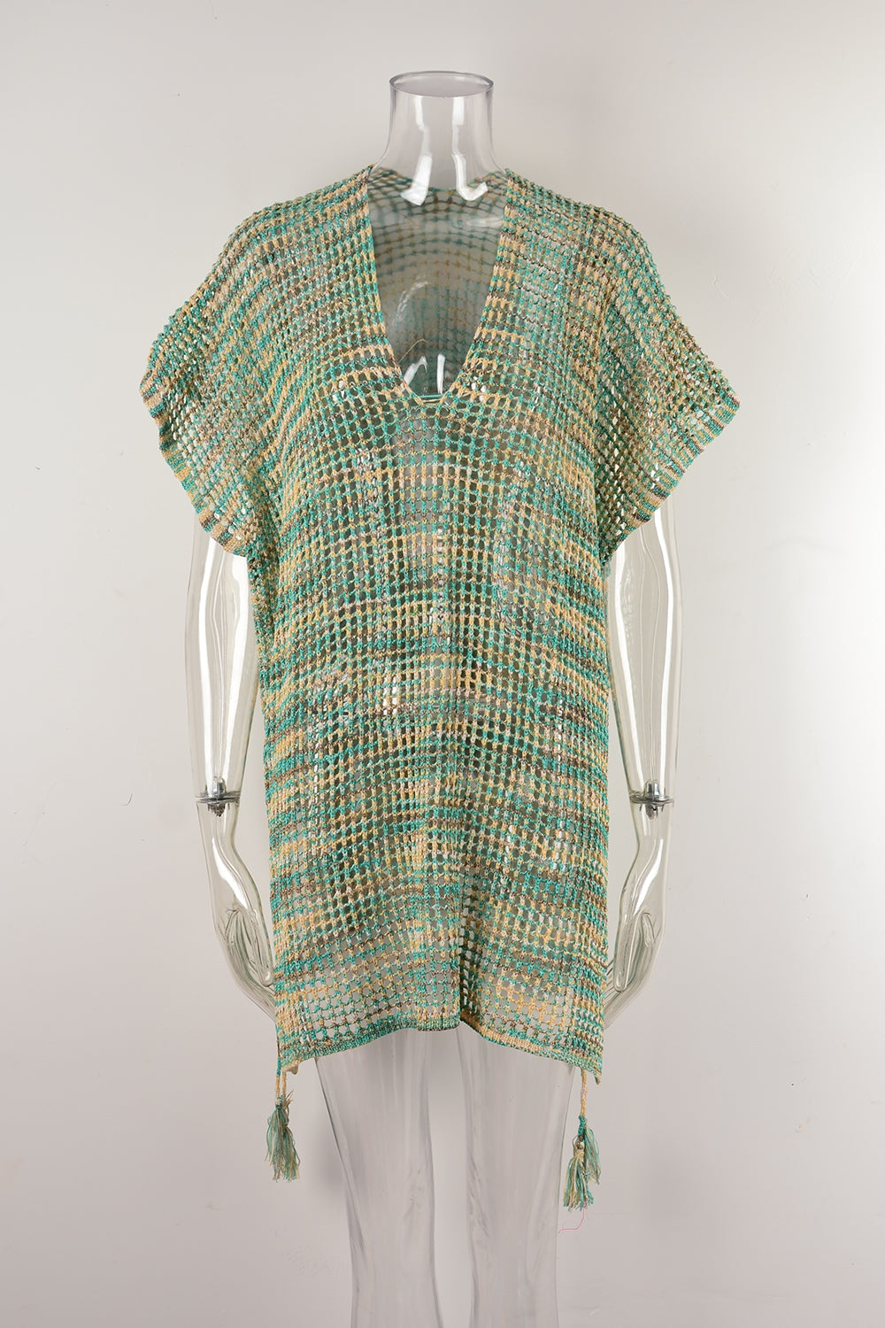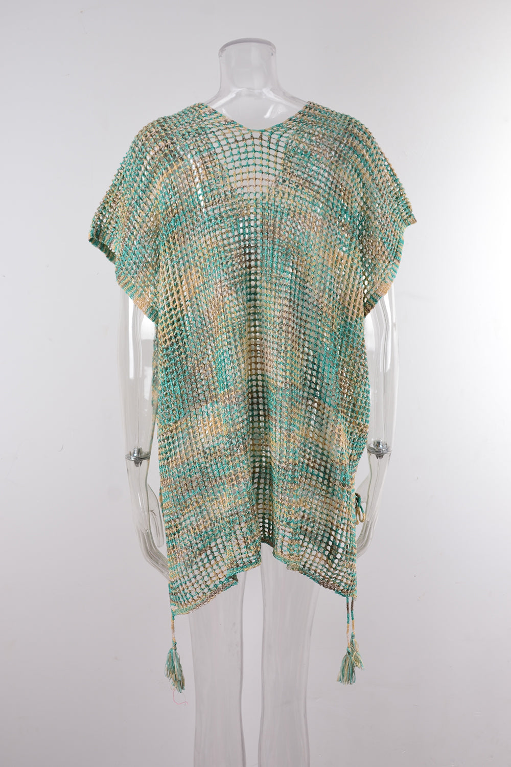 Women Summer Drawstring Loose Beach Cover up Hollow Out Cutout out Knitting Bikini Vacation Sun Protection Clothing