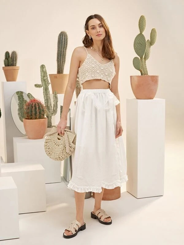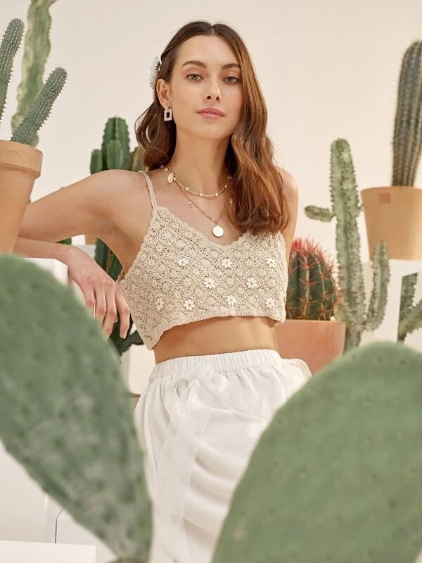 Women Summer Vacation Sleeveless Floral Crochet Solid Crop Top Crochet hook