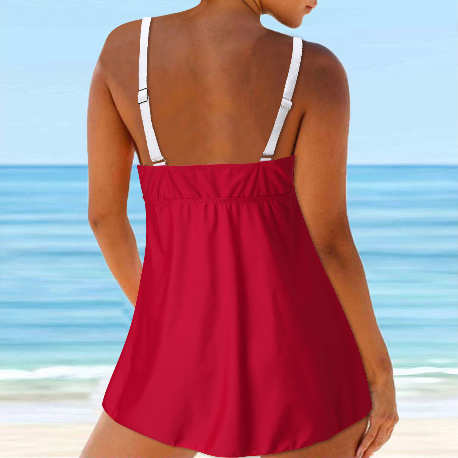 Women Swimsuit Cover Belly Backless Solid Color High Waist Boxers Tankini Swimsuit Bikini