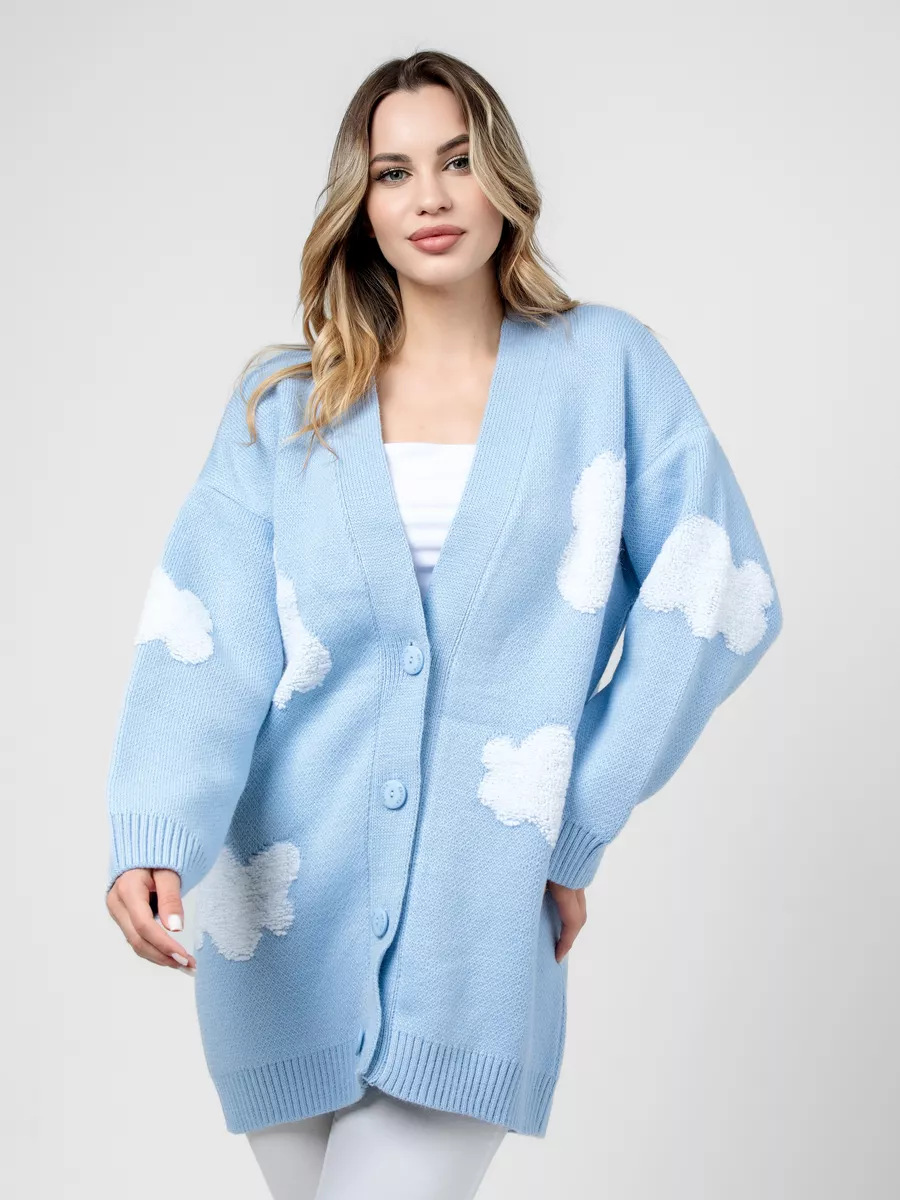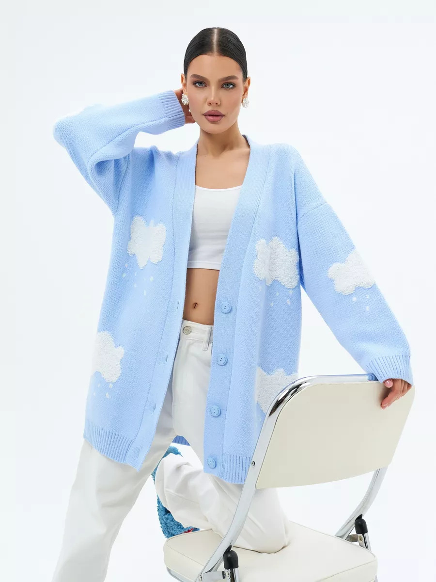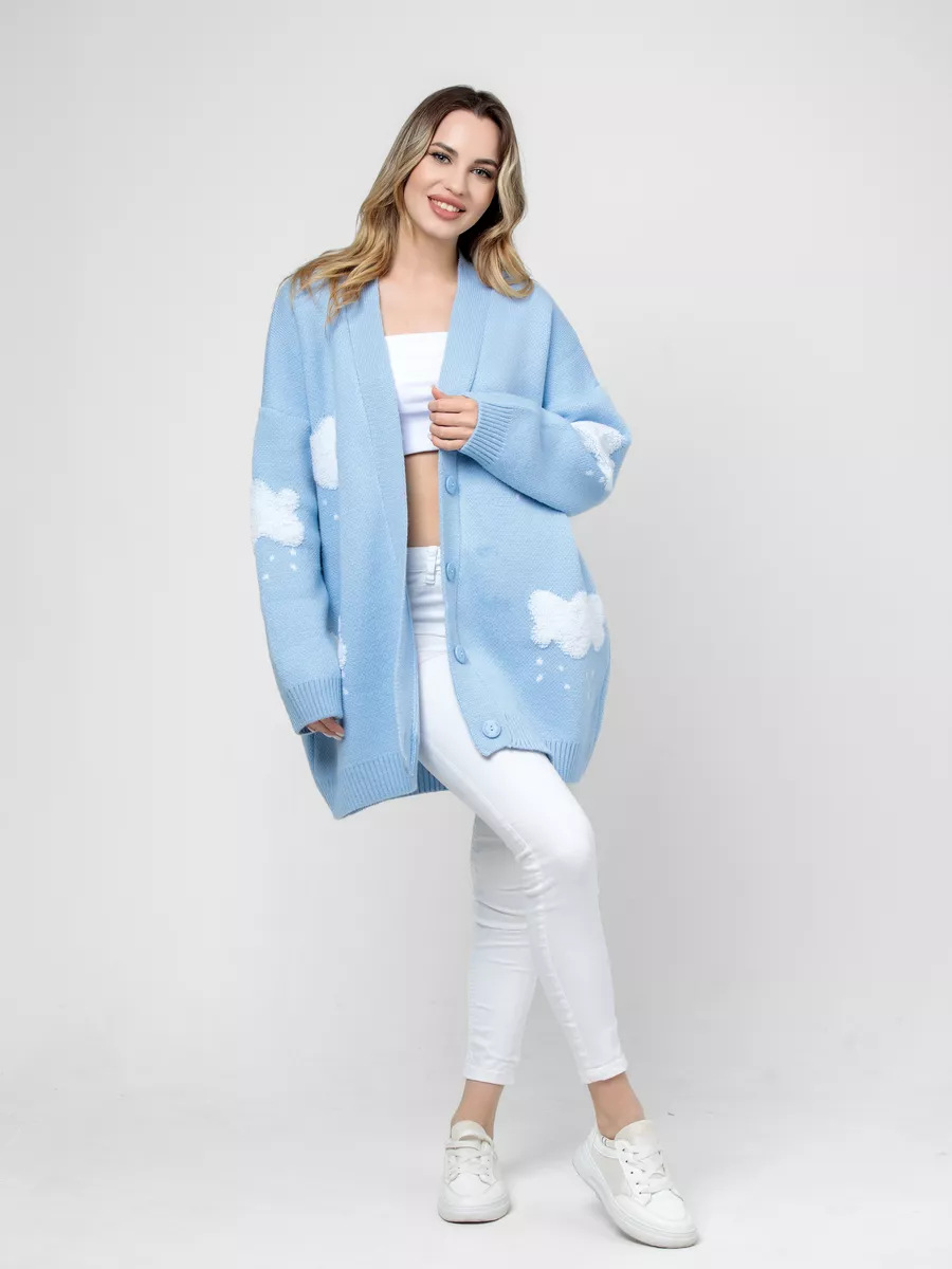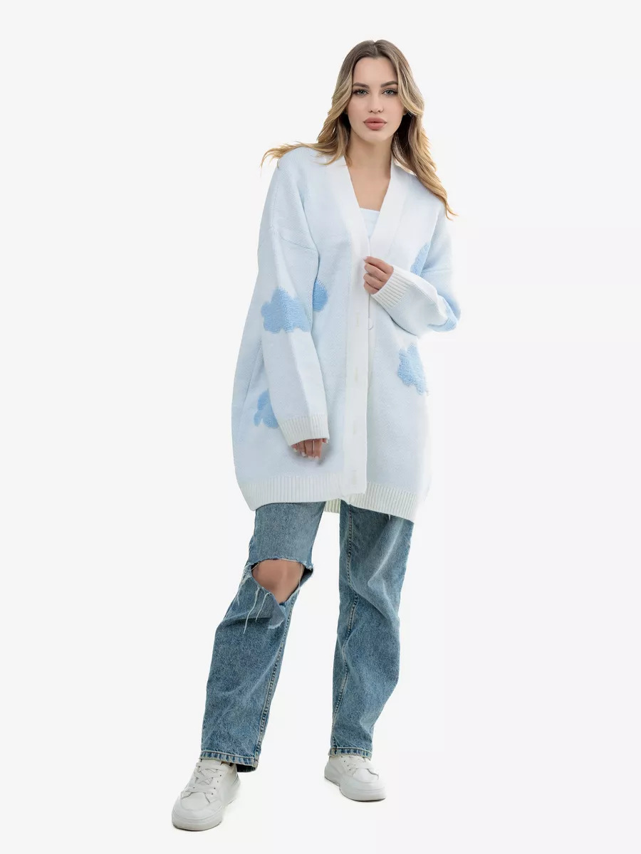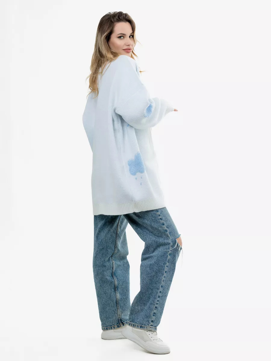 Women Turtleneck Cloud Cute Sweater Cardigan Knit Casual Daily Autumn Winter Women Coat Top