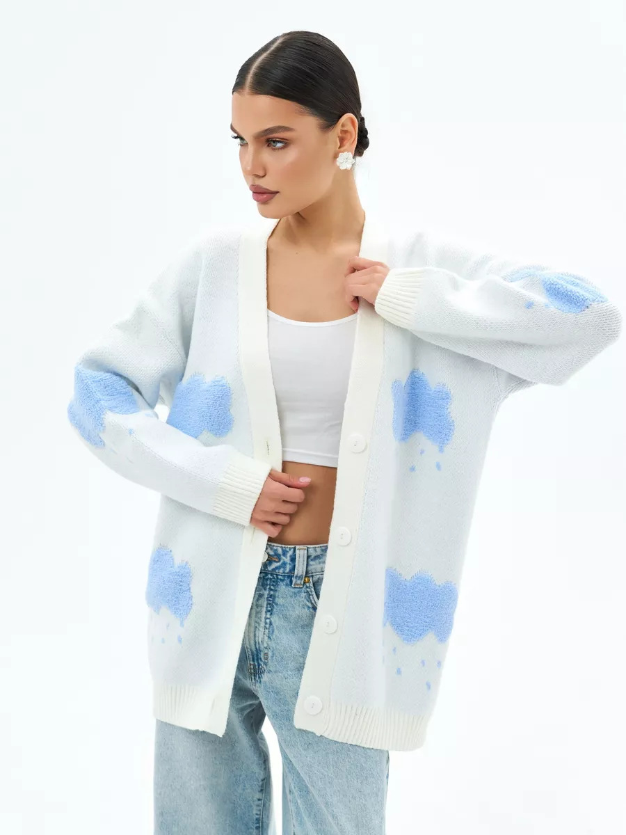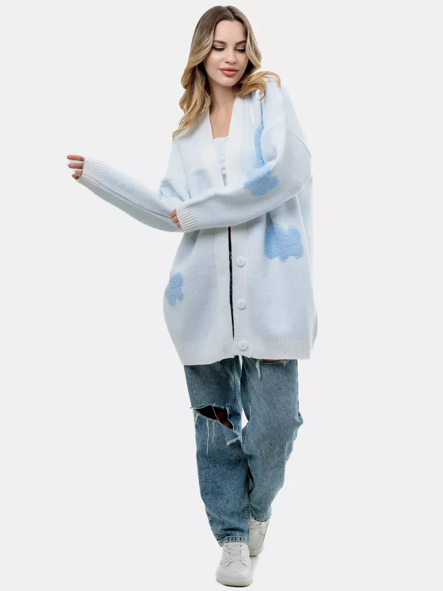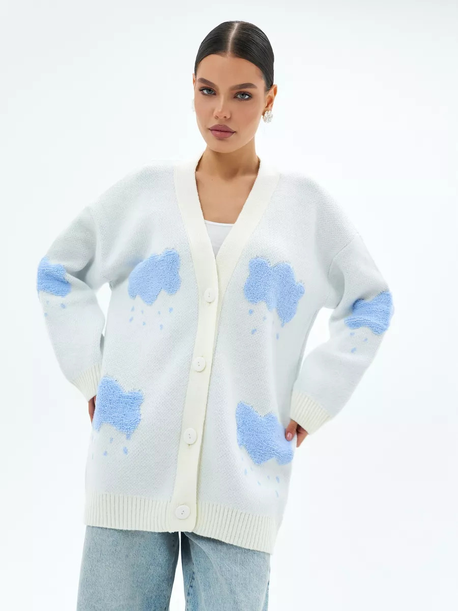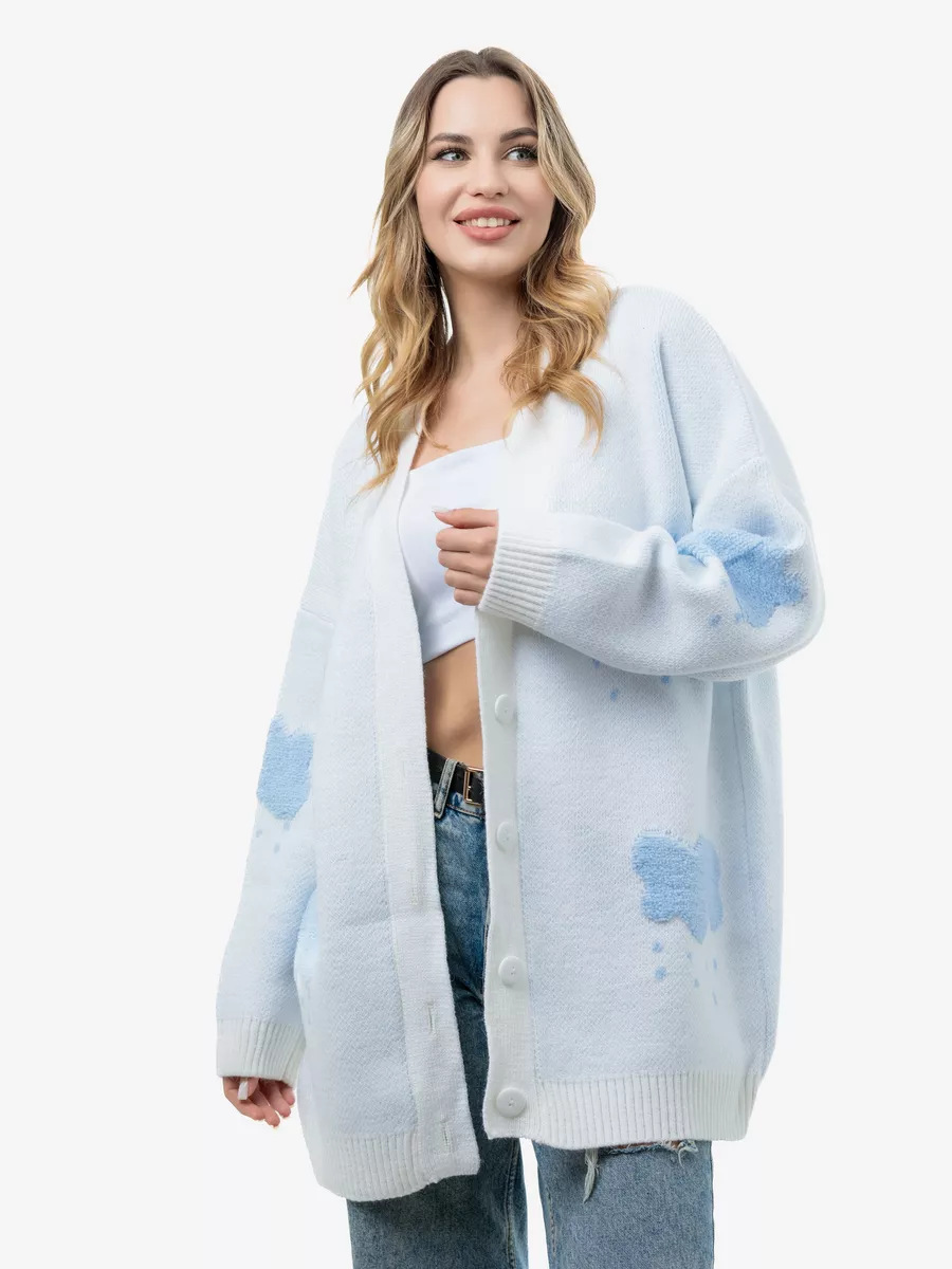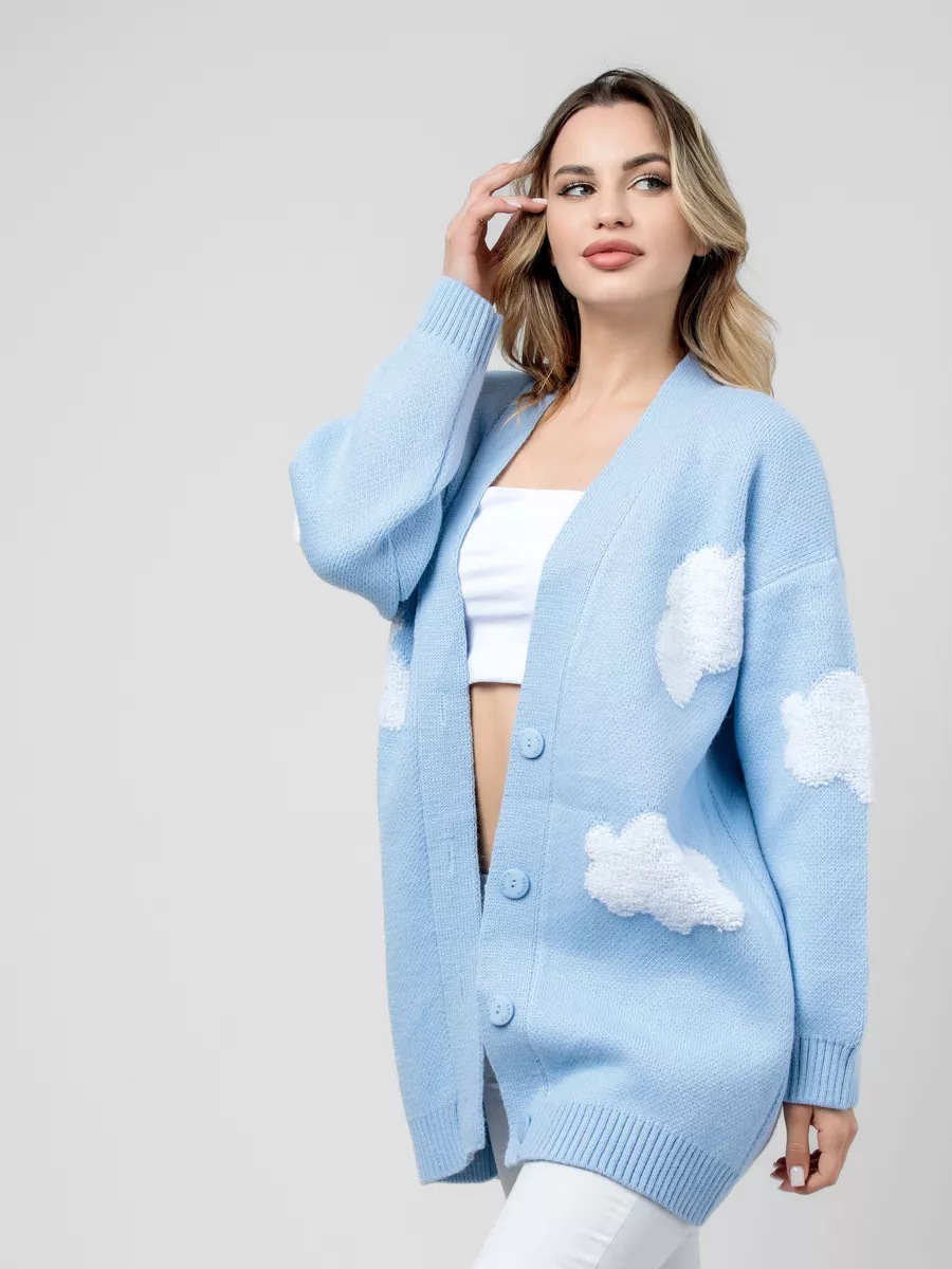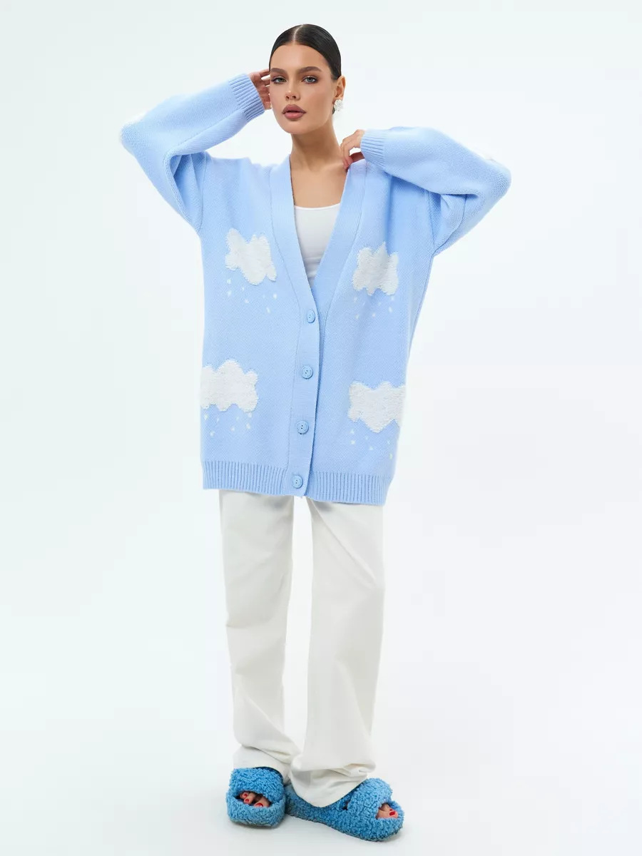 Women Turtleneck Cloud Cute Sweater Cardigan Knit Casual Daily Autumn Winter Women Coat Top