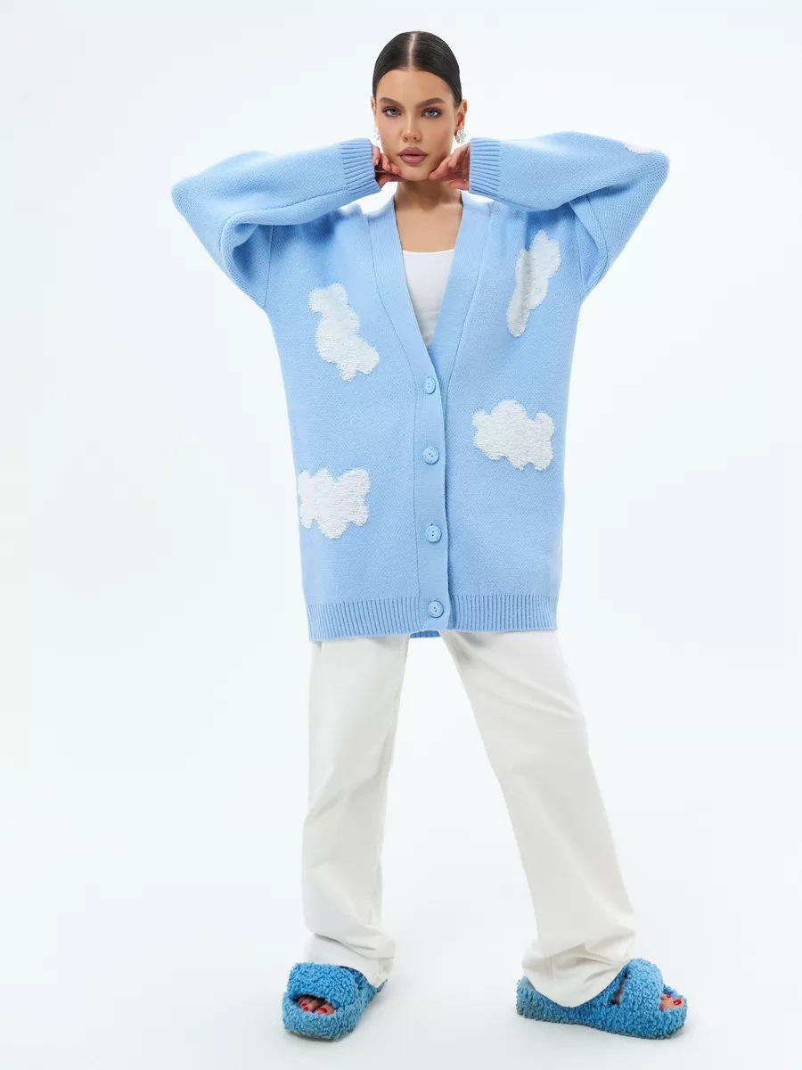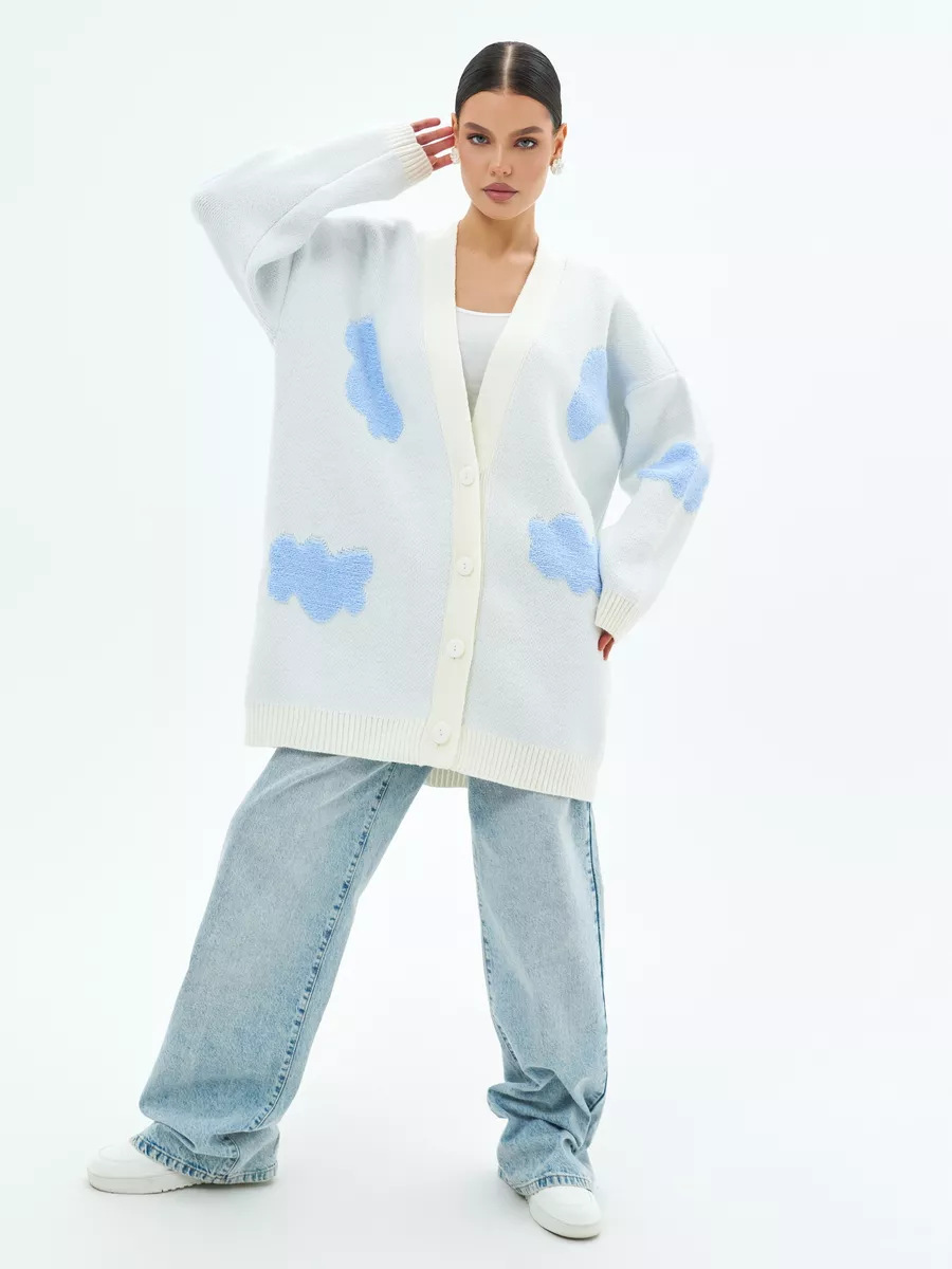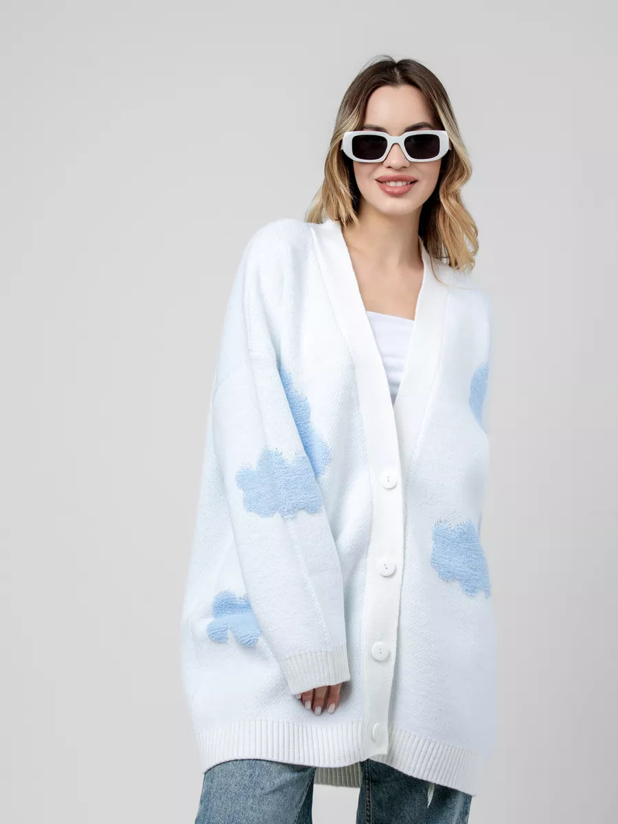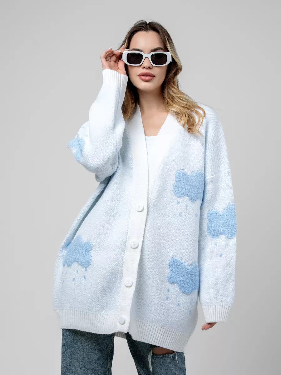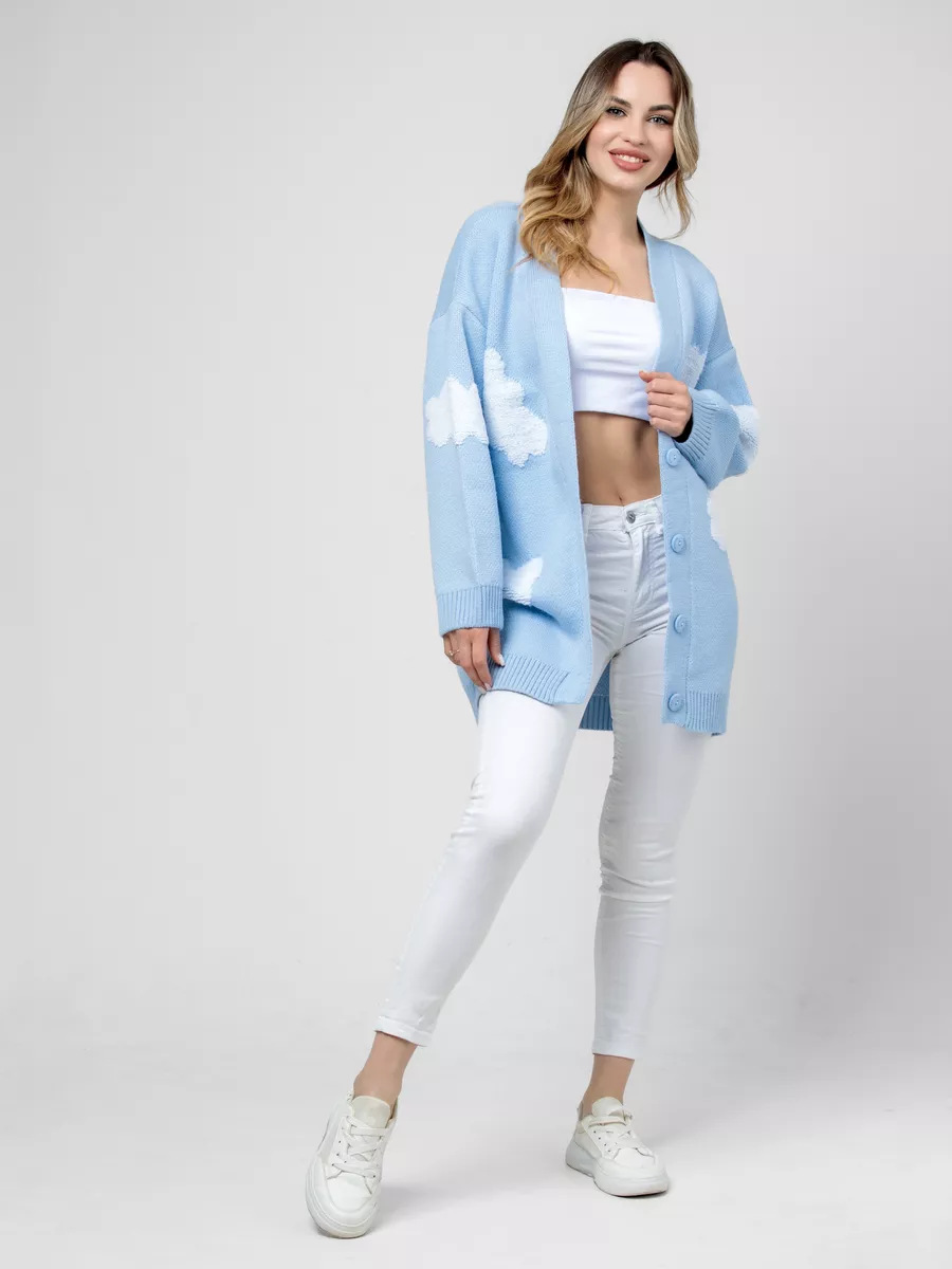 Women Turtleneck Cloud Cute Sweater Cardigan Knit Casual Daily Autumn Winter Women Coat Top