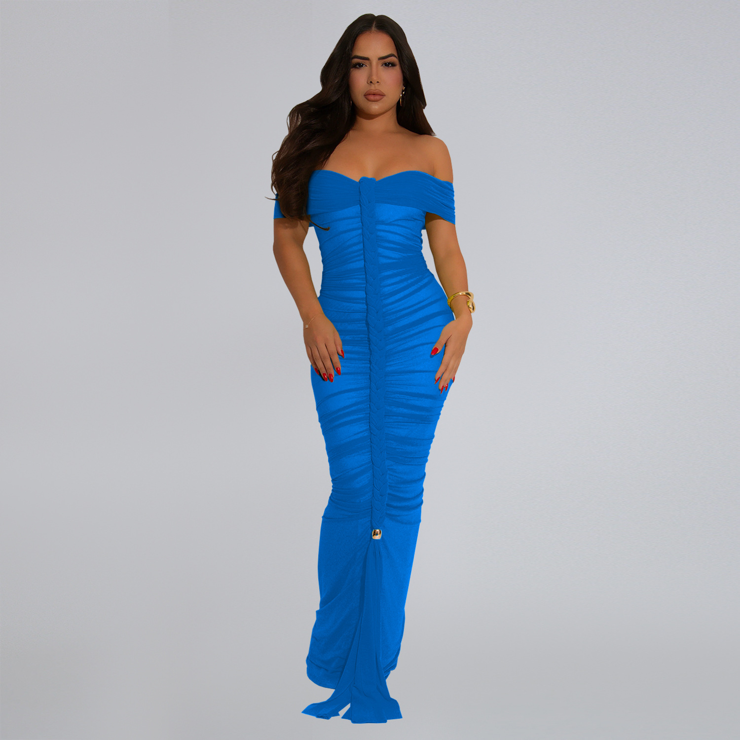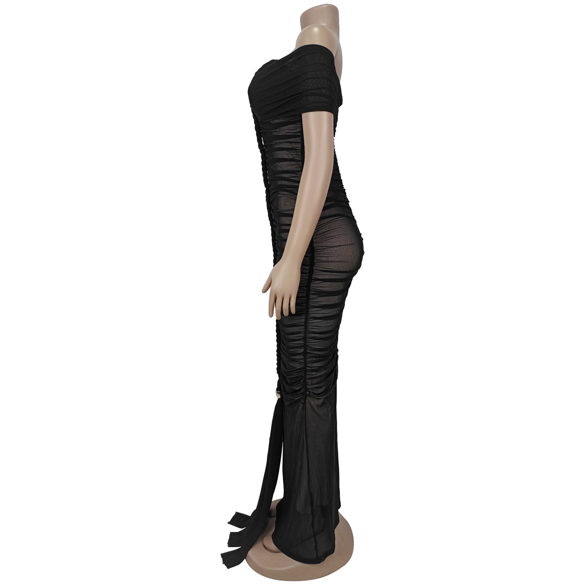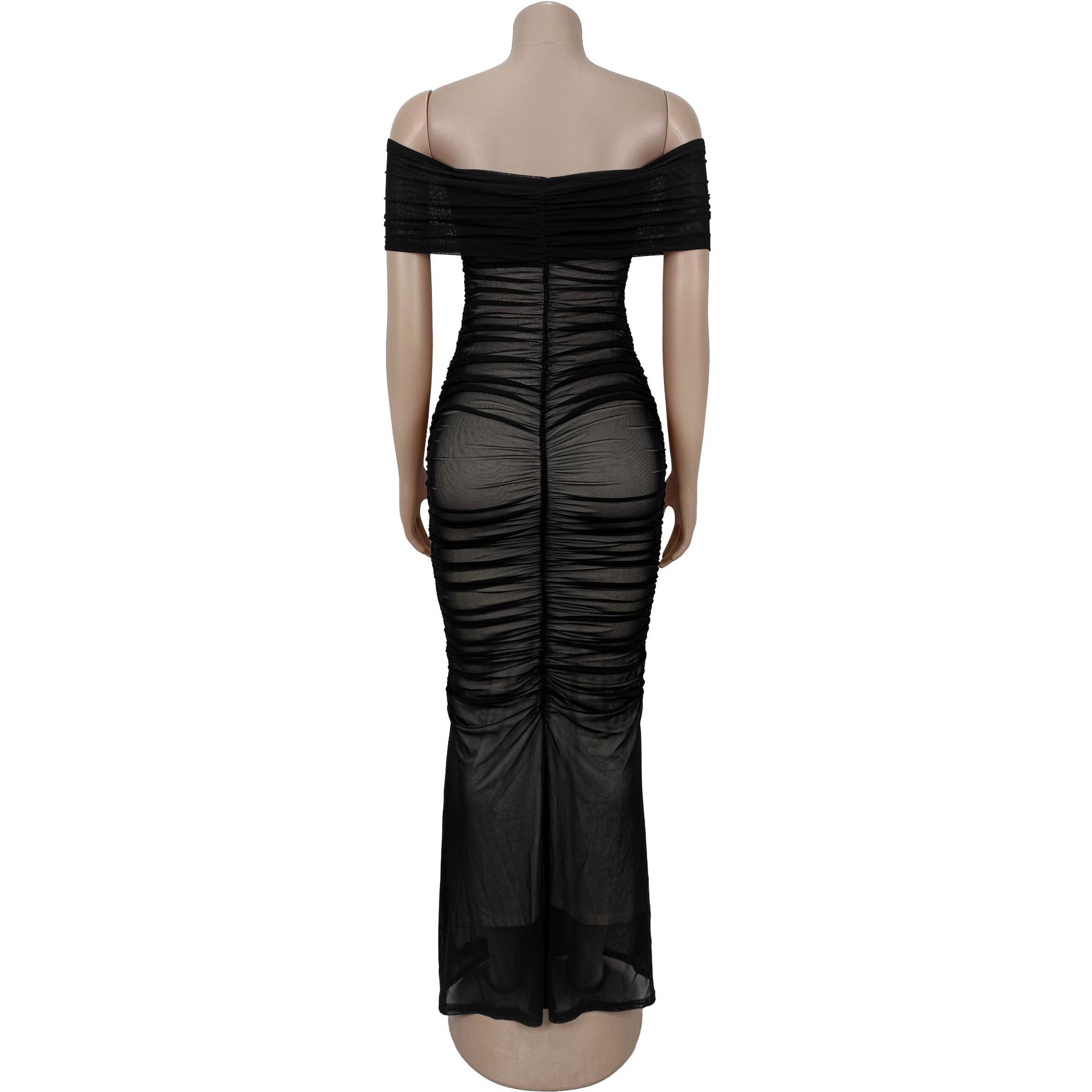 Women Wear Elegant Mesh Pleats Slim Hip Bag Dress