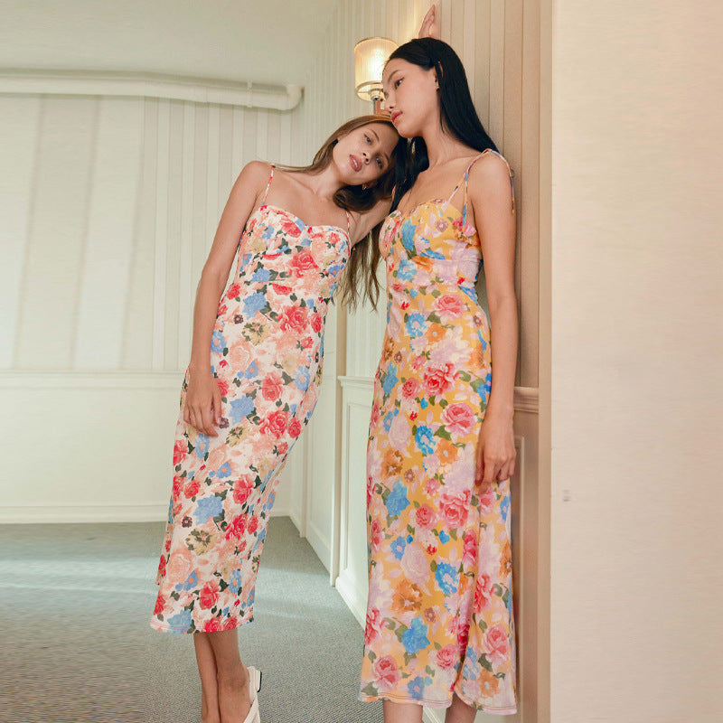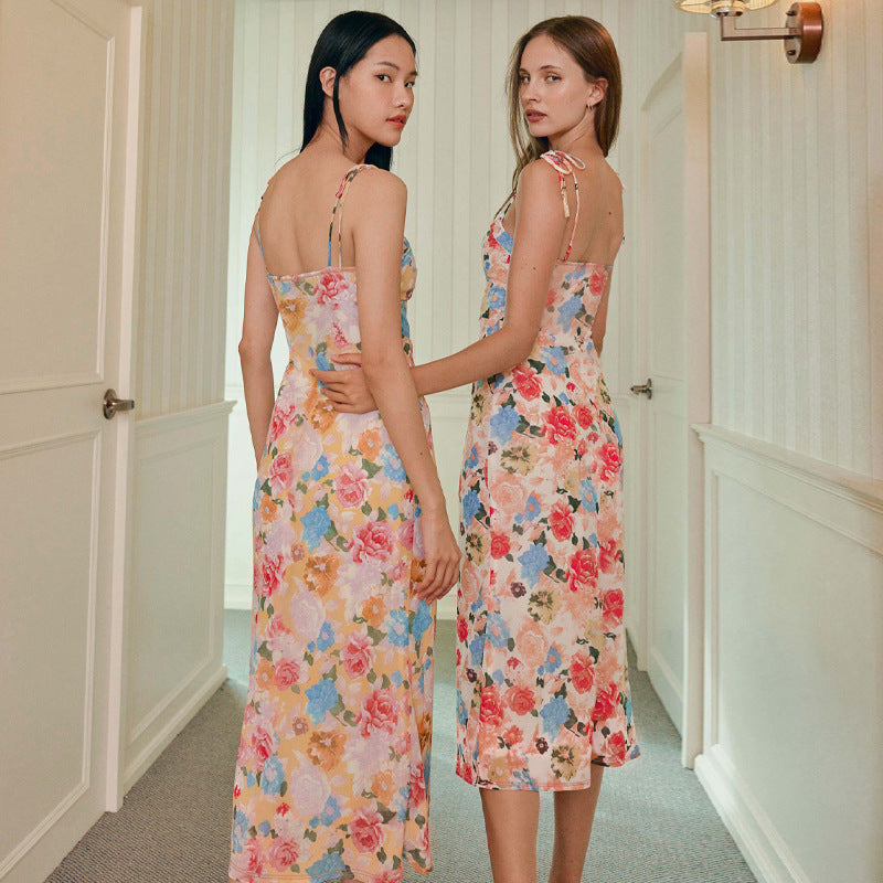 Women Wear Summer Printing Sexy Backless Lace up Dress